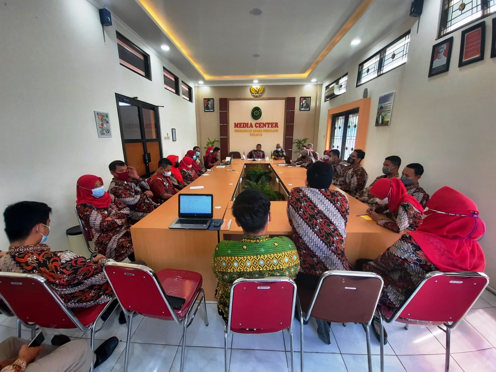 Pemalang, 05 November 2021. Hari ini pukul 13.30 WIB Pengadilan Agama Pemalang mengadakan pembinaan untuk PPNPN yang dipimpin oleh ketua Pengadilan Agama Pemalang Bapak Drs. H. Asrori, S.H., M.H. Acara juga dihadiri oleh sekretaris, perwakilan hakim, perwakilan panitera, dan seluruh kasubag Pengadilan Agama Pemalang. Tujuan dari acara ini adalah untuk membahas tentang kesejahteraan PPNPN dan sharing tentang segala keluhan atau kesulitan yang selama ini dialami oleh masing-masing PPNPN dalam menjalankan tugasnya. (yip)