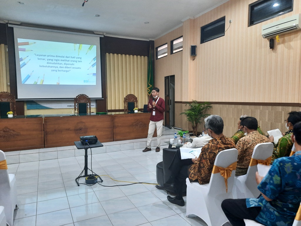 Setelah penandatanganan MoU, acara dilanjutkan dengan sharing session tentang layanan prima dari pihak BSI, khususnya ditujukan untuk petugas PTSP Pengadilan Agama Pemalang. Pelatihan tersebut dilaksanakan dalam rangka meningkatkan pelayanan di lingkungan Pengadilan Agama Pemalang menuju WBBM. Ketua Pengadilan Agama Pemalang, Bapak Drs. H. Asrori, S.H., M.H. dalam sambutannya beliau menyampaikan agar kesempatan ini bisa dijadikan sebagai wadah untuk menimba ilmu kepada pihak Bank BSI terkait pelayanan prima.