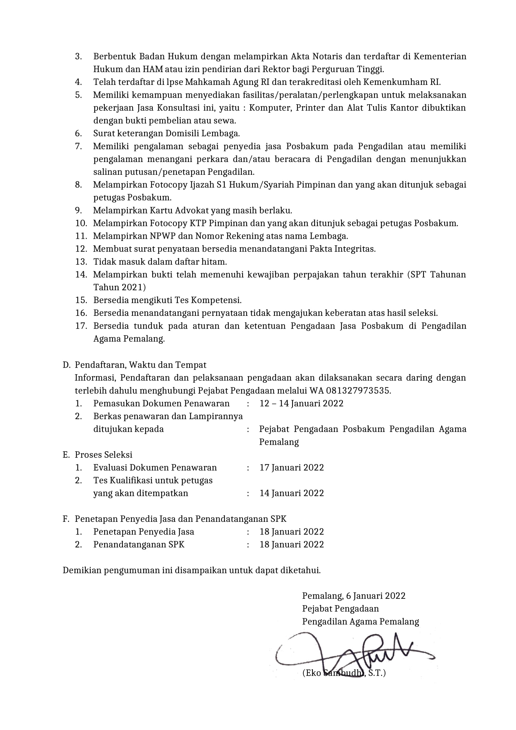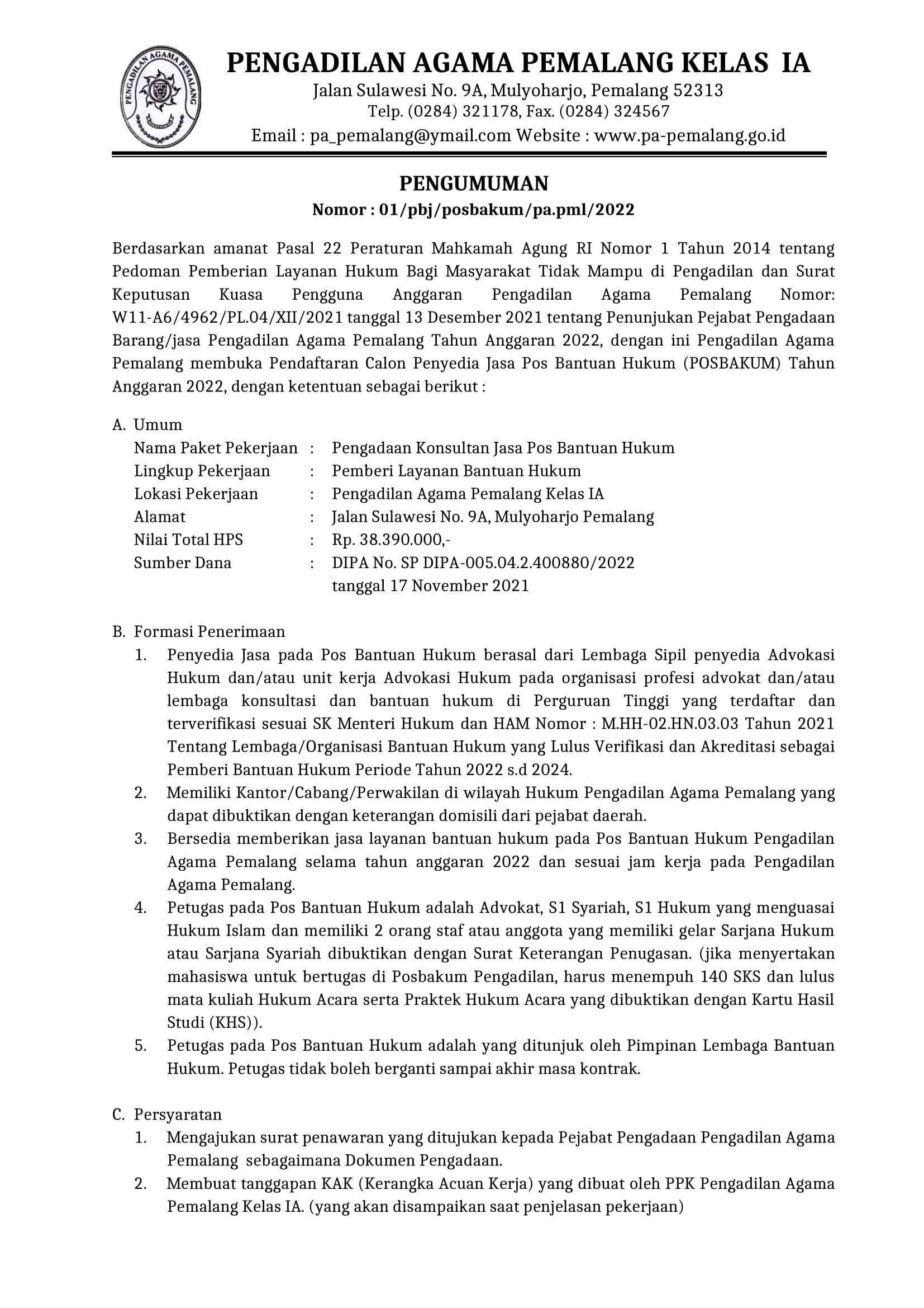 Pembukaan Pendaftaran Calon Penyedia Jasa Pos Bantuan Hukum (POSBAKUM) Tahun 2022