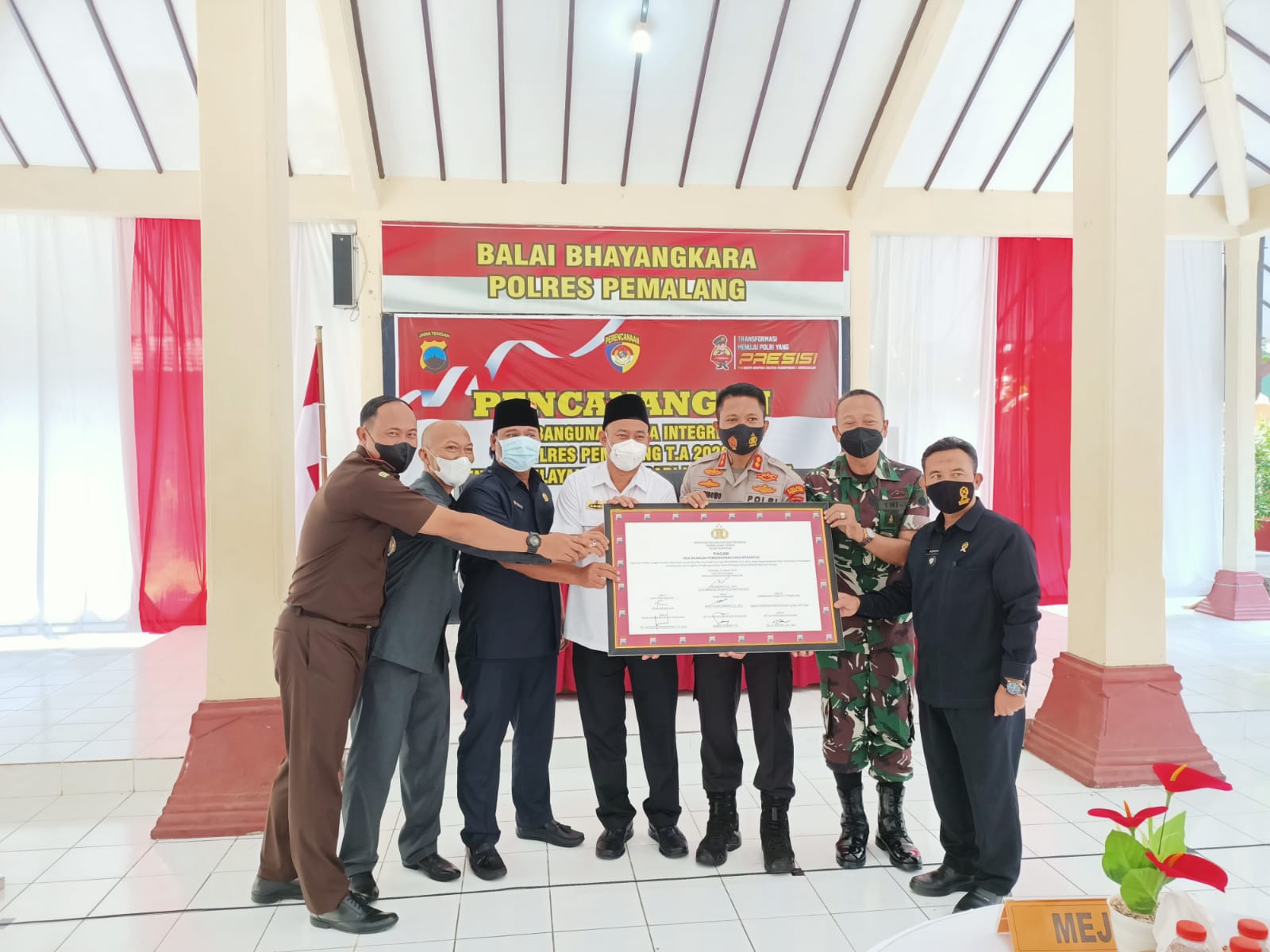 Pemalang, 19 Januari 2022. Pagi ini pukul 08.45 WIB Ketua Pengadilan Agama Pemalang Bapak Drs. H. Asrori S.H., M.H. menghadiri undangan dari Polres Pemalang dalam acara Pencanangan Zona Integritas Menuju WBK Polres Pemalang. Acara diselenggarakan di Aula Bhayangkara Polres Pemalang dan dihadiri juga oleh Bupati Pemalang Mukti Agung Wibowo, S.T., M.Si. Dalam acara tersebut dilakukan penandatangan pakta integritas yang ditandatangani oleh Bupati Pemalang, Kapolres Pemalang, Ketua DPRD, Dandim, Kajari, Ketua Pengadilan Negeri dan Ketua Pengadilan Agama Pemalang. (yip)