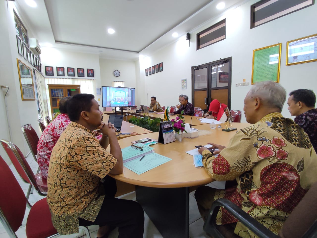 Pemalang, 20 Mei 2022 – Bertempat di Ruang Media Center Pengadilan Agama Pemalang pukul 13:00 WIB Ketua, Hakim, dan Panitia E-Eksaminasi Pengadilan Agama Pemalang menghadiri Sosialisasi E-Eksaminasi Tahun 2022 yang diselenggarakan oleh Direktorat Jenderal Badan Peradilan Agama  Mahkamah Agung Republik Indonesia via Zoom Meeting.