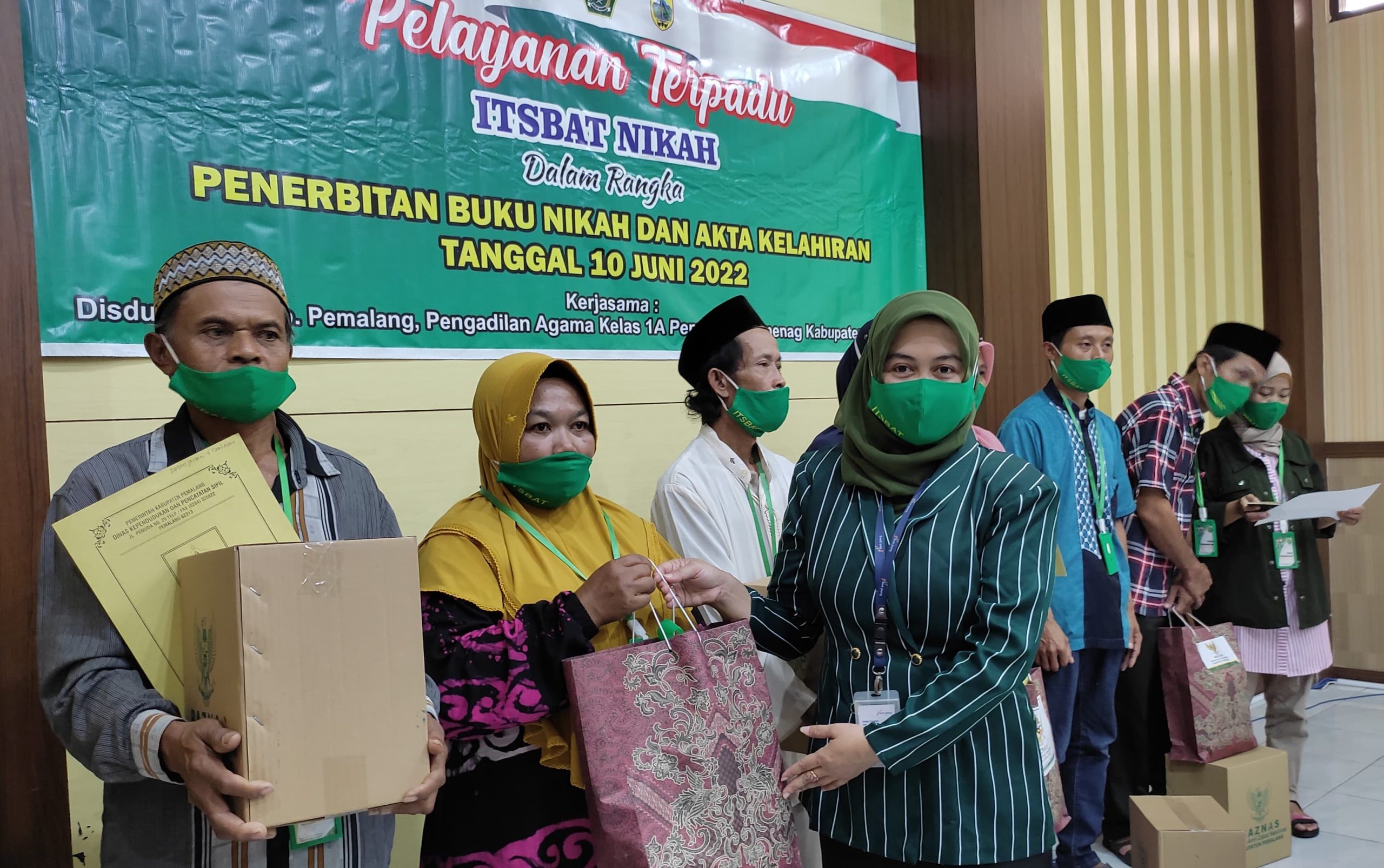 Pemalang, 10 Juni 2022. Sebanyak 49 pasangan dari Kecamatan Randudongkal dan Watukumpul melaksanakan sidang itsbat nikah dalam acara Pelayanan Terpadu Itsbat Nikah yang diselenggarakan oleh Disdukcapil Kabupaten Pemalang dan bekerjasama dengan Pengadilan Agama Pemalang Kelas 1A dan Kemenag Kabupaten Pemalang. Pelayanan Terpadu Itsbat Nikah ini diselenggarakan berdasarkan Perma No 1 Th 2015 Tentang Pelayanan Terpadu Sidang Keliling Pengadilan Negeri dan Pengadilan Agama/Mahkamah Syar’iyah Dalam Rangka Penerbitan Akta Perkawinan, Buku Nikah dan Akta Kelahiran.