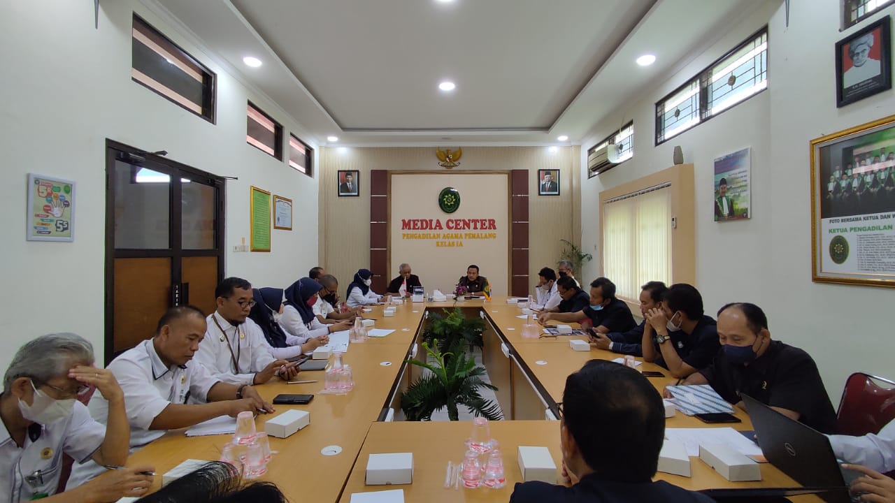 Pemalang, 13 Juni 2022. Pengadilan Agama Pemalang melaksanakan rapat dinas bulanan yang dilaksanakan di Ruang Media Center pukul 13.30 WIB. Rapat ini dihadiri oleh Ketua Pengadilan Agama Pemalang, seluruh Hakim, ASN dan PPNPN Pengadilan Agama Pemalang. Dalam rapat yang dipimpin oleh Ketua Pengadilan Agama Pemalang Drs. H. Asrori, S.H., M.H. ini membahas tentang persiapan menuju Wilayah Birokrasi Bersih dan Melayani (WBBM) dengan motto Bersatu Kita Kuat, Bersama Kita