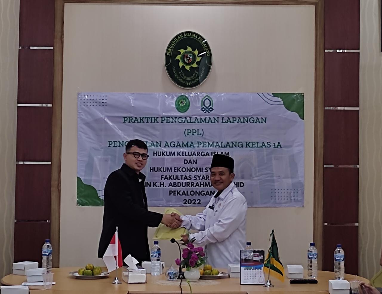 Dalam acara ini juga dilakukan penyerahan secara simbolis Mahasiswa PPL oleh Dosen pembimbing prodi Hukum Keluarga Islam Heris Suhendar, M.H kepada Ketua Pengadilan Agama Pemalang Drs. H. Asrori, S.H., M.H.