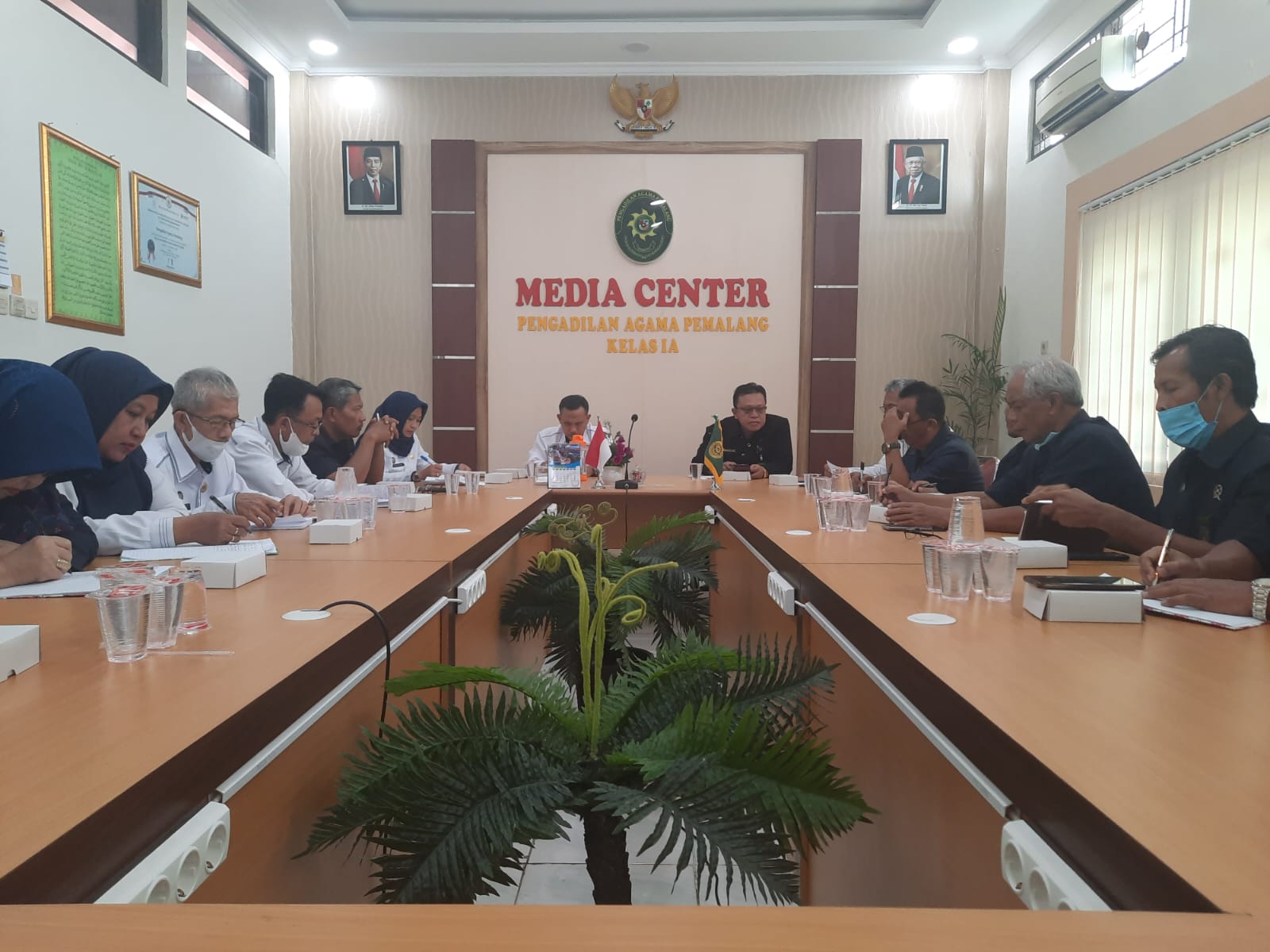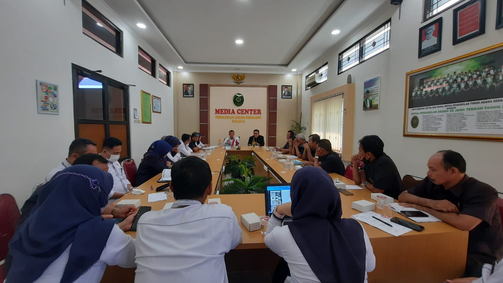 Pemalang, 12 September 2022. Bertempat di Ruang Media Center Pengadilan Agama Pemalang Kelas 1A hari ini pukul 13.30 WIB dilaksanakan rapat dinas bulanan yang dihadiri oleh seluruh pegawai Pengadilan Agama Pemalang Kelas 1A. Rapat dibuka oleh Ketua Pengadilan Agama Pemalang Drs. H. Asrori, S.H., M.H. yang kemudian dilanjutkan dengan laporan dari bagian kepaniteraan dan kesekretariatan. Dalam laporannya panitera Afif Eko Sulistiono, S.H. menjabarkan jumlah perkara yang telah ditangani di Pengadilan Agama Pemalang selama tahun 2022 s.d bulan September ini. Beliau juga menyampaikan tindak lanjut dari permasalahan yang telah dibahas pada rapat bulan lalu. Untuk kesekretariatan, Mulyatun, S.H. selaku sekretaris menyampaikan laporan tentang seputar kesekretariatan dari bagian kepegawaian, umum dan keuangan, serta PTIP. Rapat bulanan kali ini juga dihadiri oleh Wakil Ketua yang baru saja dilantik Amran Abbas, S.Ag., S.H., M.H yang dalam kesempatan ini juga memberikan banyak masukan. Rapat ditutup dengan mendengarkan aspirasi dari para pegawai. Semoga dengan dilaksanakan rapat bulanan rutin ini kinerja para pegawai Pengadilan Agama Pemalang Kelas 1A menjadi semakin baik. (yip)