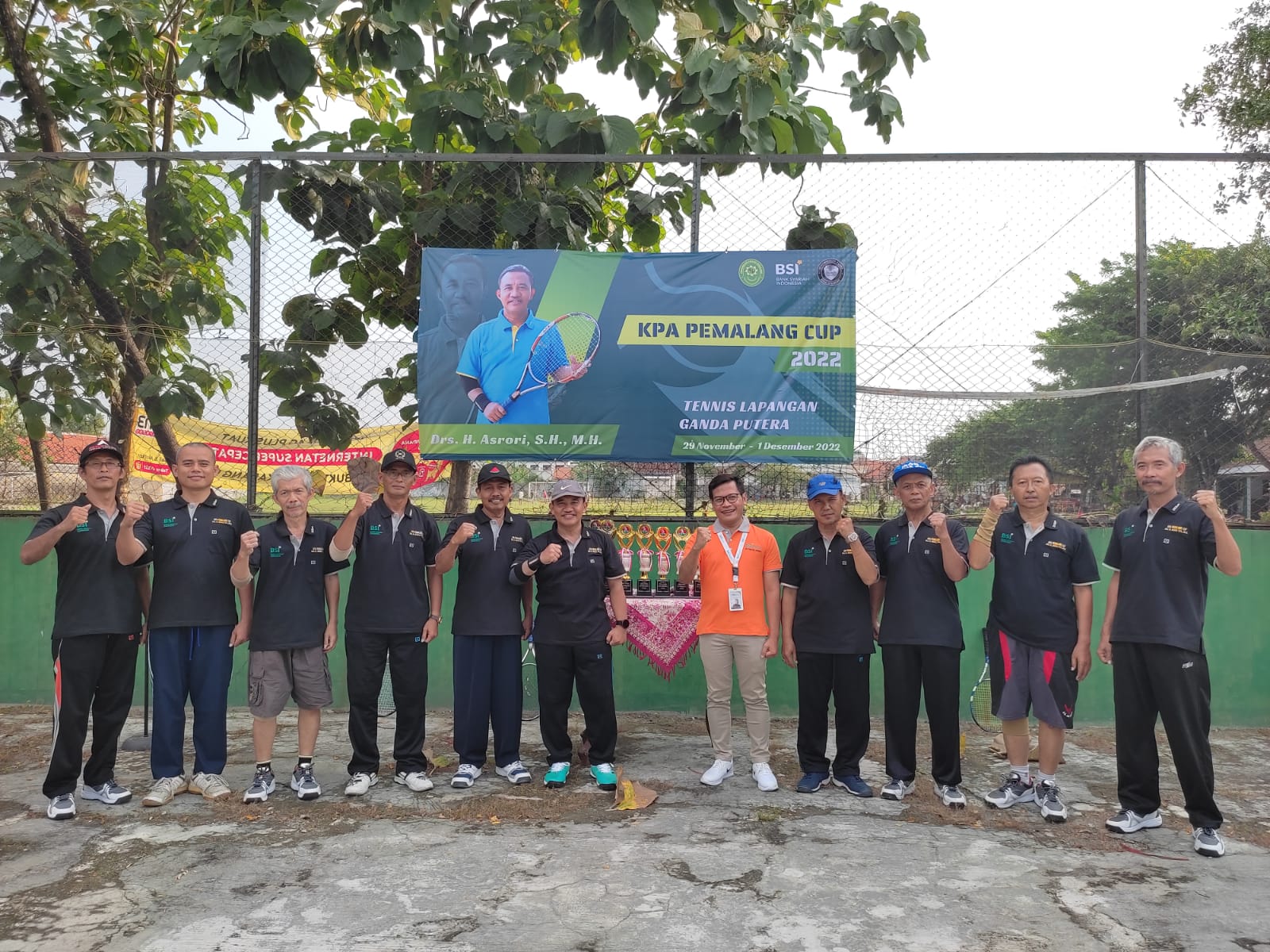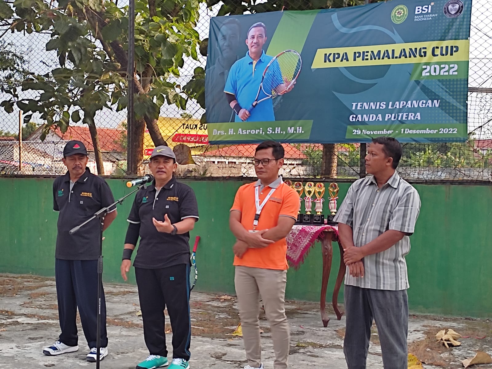 Pemalang, 29 November 2022. Bertempat di Lapangan Tenis Perhutani Pemalang, sore ini pukul 15.00 WIB dilaksanakan acara pembukaan kejuaran Tenis KPA Pemalang Cup yang akan diselenggarakan selama 3 hari mulai tanggal 29 November 2022 hingga 01 Desember 2022. Acara yang juga disponsori oleh Bank Syariah Indonesia (BSI) KCP Pemalang Sudirman 1 ini dibuka secara resmi oleh Ketua Pengadilan Agama Pemalang Kelas 1A Drs. H. Asrori, S.H., M.H. yang juga dihadiri oleh Branch Manager BSI KCP Pemalang Sudirman 1 Bapak Denny Yulianto.