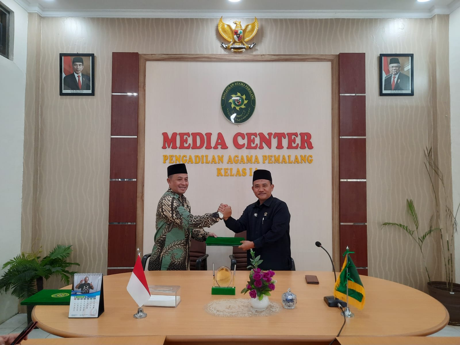 Pemalang, 28 Desember 2022. Bertempat di Ruang Media Center Pengadilan Agama Pemalang Kelas IA hari ini pukul 10.00 WIB dilaksanakan penandatanganan nota kesepakatan antara PA Pemalang dengan Kankemenag Kab Pemalang, PA Pemalang dengan PT Pos Indonesia cabang Pemalang, dan PA Pemalang dengan Pos Bantuan Hukum LBH Perisai Kebenaran. Pelaksanaan penandatanganan MoU ini guna memperpanjang kerjasama yang juga telah terjalin di tahun sebelumnya.