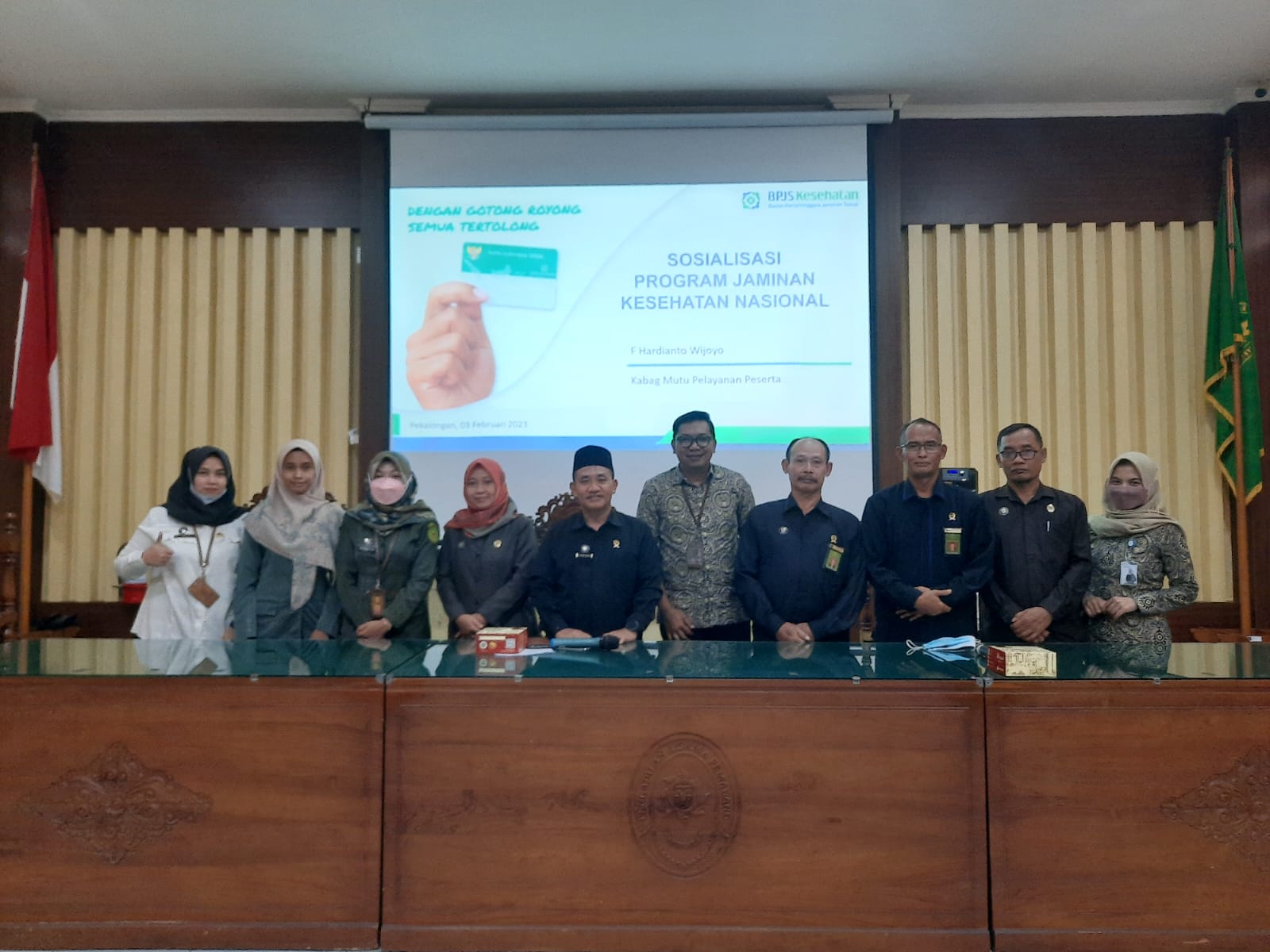 Pemalang, 08 Februari 2023 – Pada siang hari ini pukul 13.00 WIB dilaksanakan sosialisasi program JKN-KIS oleh BPJS Kesehatan di Ruang Sidang Utama Pengadilan Agama Pemalang. Sosialisasi ini dihadiri oleh para hakim, panitera, sekretaris, ASN, dan PPNPN Pengadilan Agama Pemalang.