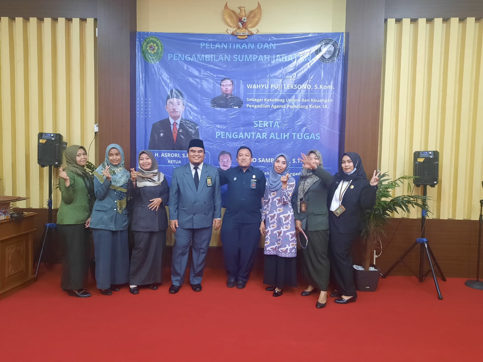 Adalah Wahyu Puji Leksono, S.Kom yang semula menjabat sebagai Kepala Sub Bagian Umum & Keuangan di PA Banjarnegara Kelas 1A dilantik menjadi Kepala Sub Bagian Umum & Keuangan PA Pemalang Kelas 1A. Serta pengantar alih tugas Eko Sambudhi, S.T. yang semula menjabat sebagai Kepala Sub Bagian Umum & Keuangan PA Pemalang menjadi Sekretaris PA Magelang Kelas II.