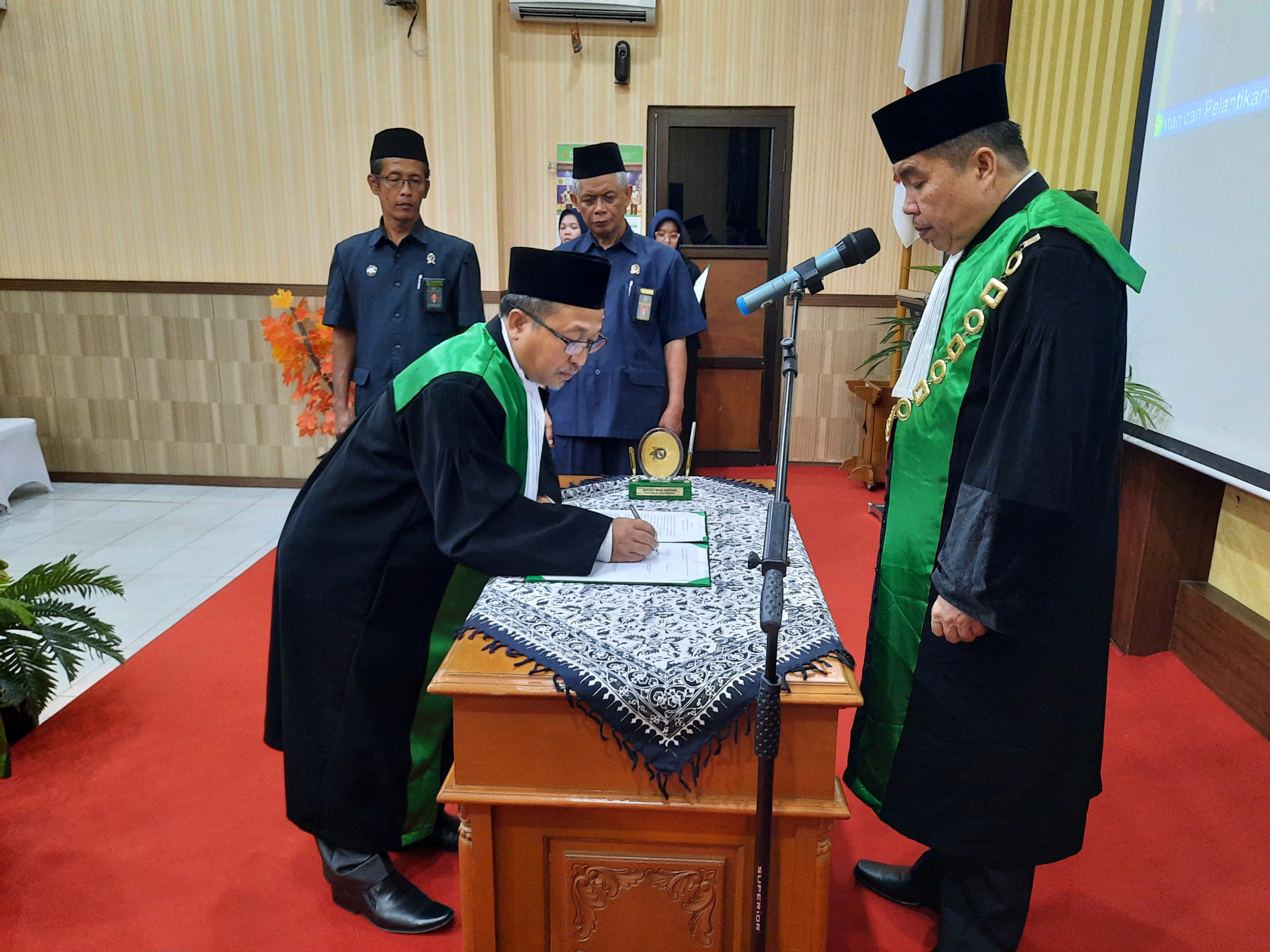 Acara dimulai dengan pembacaan doa oleh Hakim Drs. H. Abd. Hamid, S.H., M.H. dilanjutkan dengan menyanyikan lagu Indonesia Raya dan Hymne Mahkamah Agung RI, dan dilanjutkan pembacaan petikan Surat Keputusan Ketua Mahkamah Agung RI kemudian dilaksanakan pengambilan Sumpah Jabatan dan Pelantikan Drs. Husaini, S.H., M.H. dengan saksi 1 Drs. H. Djuwadi, S.H., M.H. dan saksi 2 Drs. Abdullah Shofwandi, M.H.