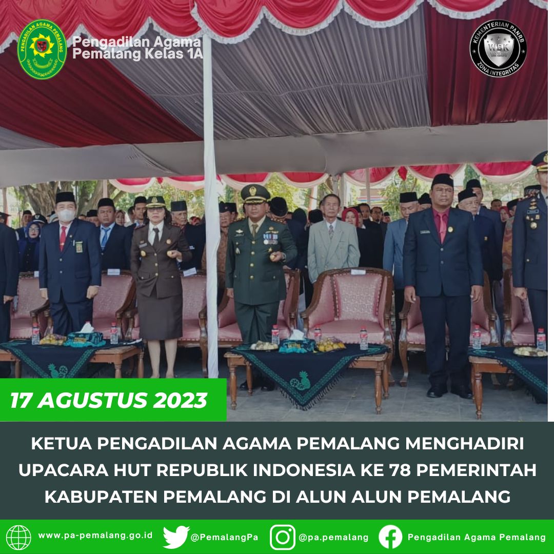 Ketua Pengadilan Agama Pemalang Menghadiri Upacara Hut Republik Indonesia Ke 78 Pemerintah Kabupaten Pemalang Di Alun Alun Pemalang