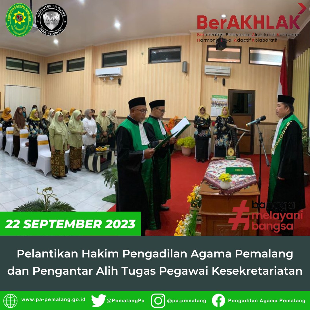 Pelantikan Hakim Pengadilan Agama Pemalang dan Pengantar Alih Tugas Pegawai Kesekretariatan