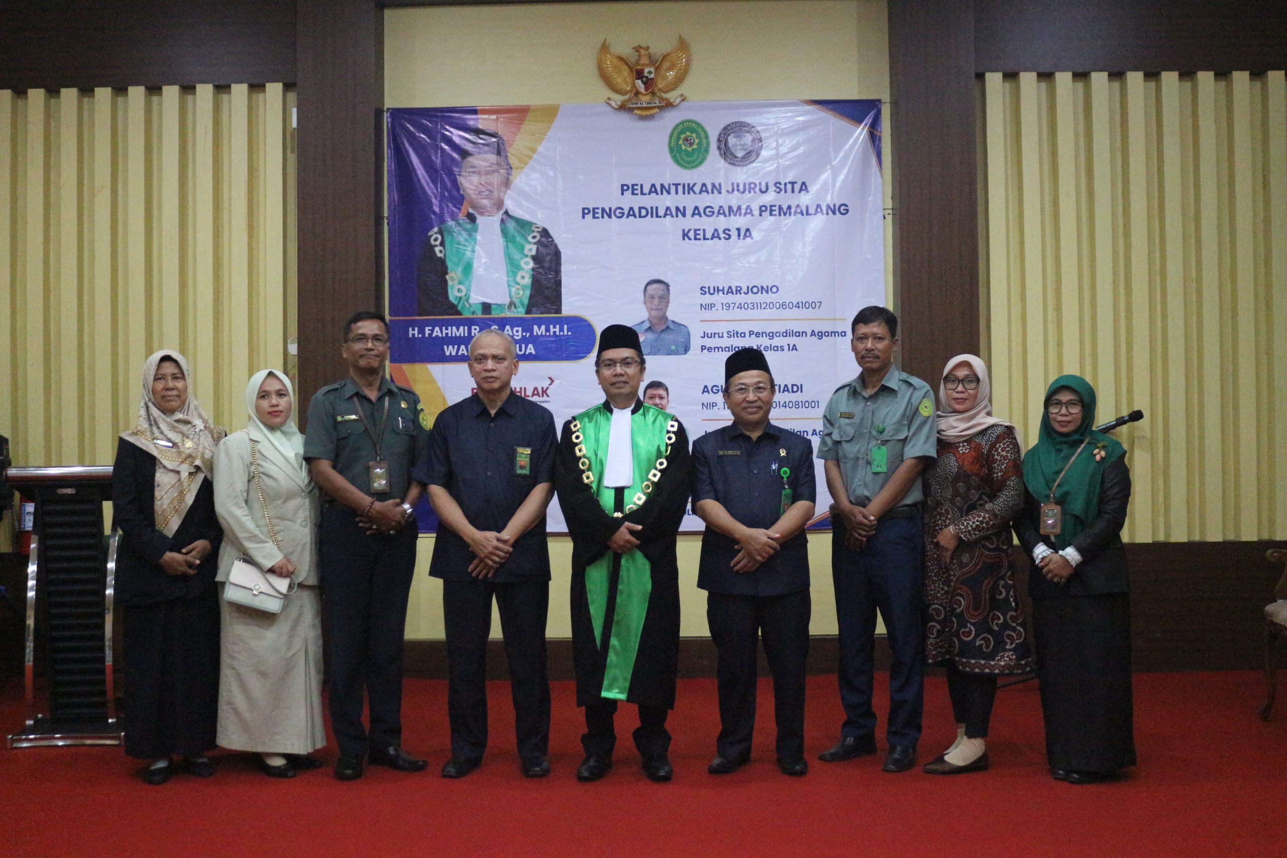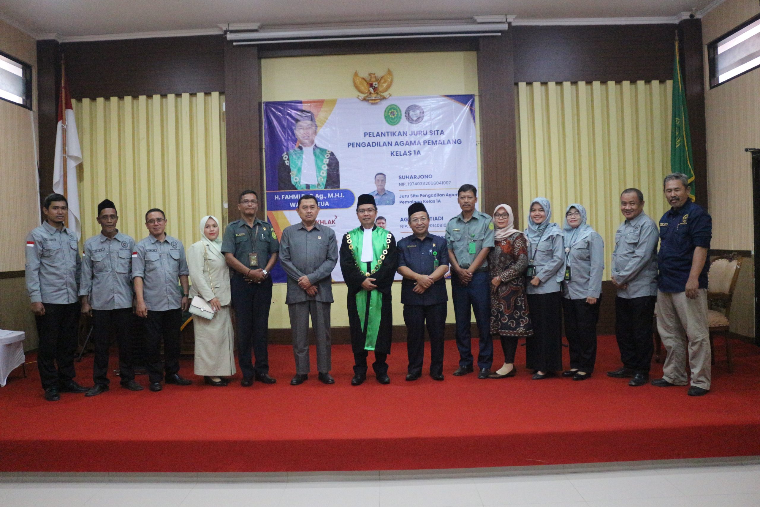 Bertempat di Ruang Sidang Utama Abu Bakar Ash Shidiq pukul 14.00 di laksanakan Pelantikan dua Jurusita Pengadilan Agama Pemalang. Dua Jurusita yang dilantik adalah Suharjono (dari PA Pekalongan) dan Agung Ristiadi(dari PA Slawi). Acara di buka dengan Doa Bersama yang dipimpin Hakim Pengadilan Agama Pemalang Drs. H. Sobirin, M.H. dilanjutkan dengan acara inti Pelantikan yang di pimpin oleh Wakil Ketua Pengadilan Agama Pemalang. H. Fahmi R, S.Ag.,M.H.I.