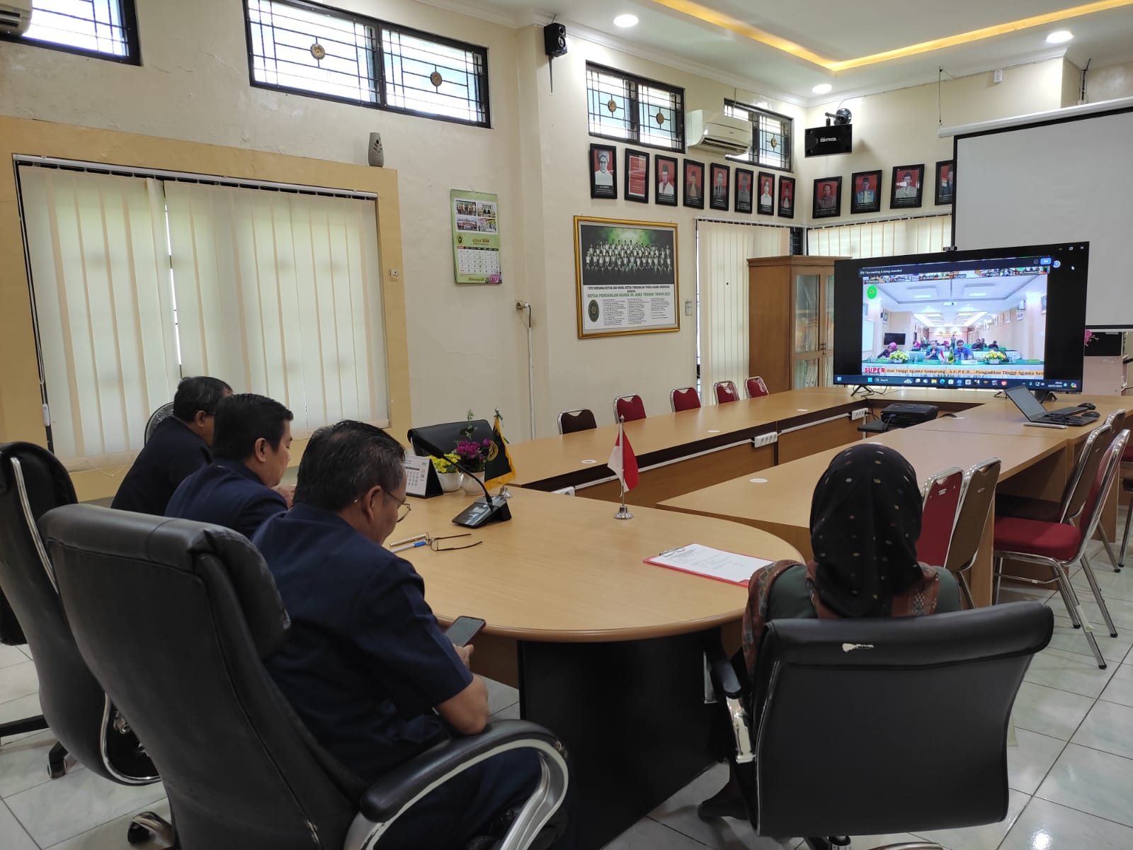 Wakil Ketua, Sekretaris, Panitera, Staf dan Tim IT Pengadilan Agama Pemalang mengikuti Zoom Meeting Sosialisasi Top Digital Awards & Rakor Pendistribusian