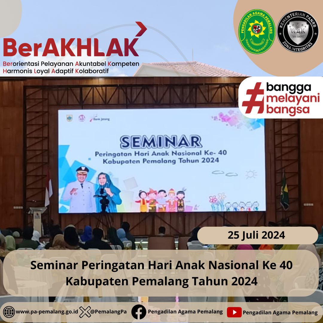 Seminar Peringatan Hari Anak Nasional Ke 40 Kabupaten Pemalang Tahun 2024
