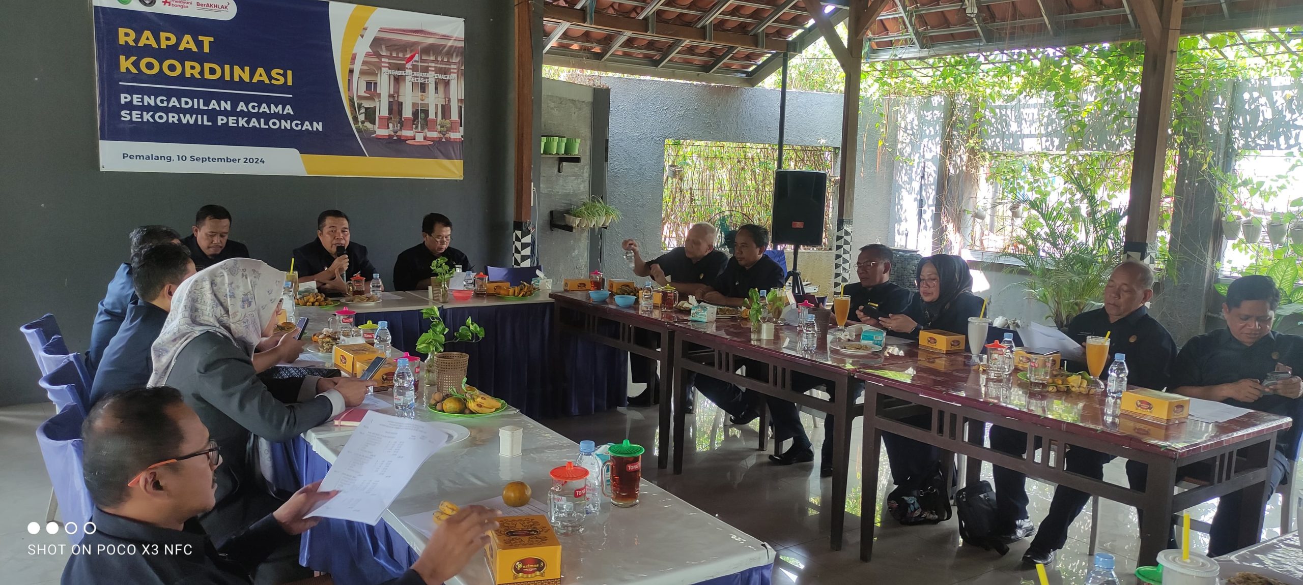 Ketua, Panitera dan Sekretaris Pengadilan Agama Pemalang Mengikuti Rapat Koordianasi Pengadilan Agama Se Korwil Pekalongan Selasa, 10 September 2024 yang di adakan di Bojong Resto Pemalang. Dalam Rapat ini membahas mengenai Pembinaan KPTA Semarang dan rencana KMA CUP.