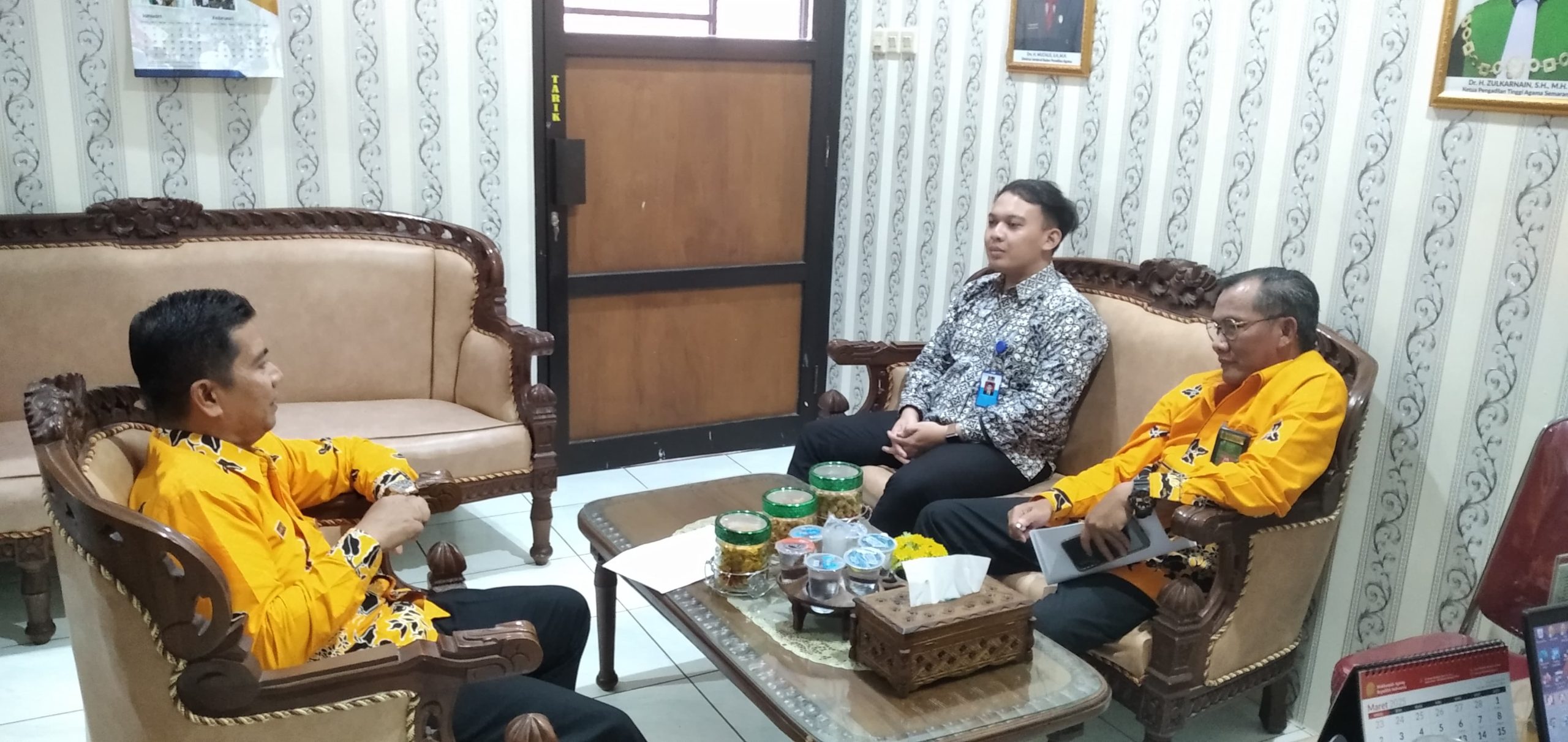 Wakil Ketua & Panitera Pengadilan Agama Pemalang Melakukan Monitoring Dan Evaluasi (Monev) Dengan Mediator Non Hakim Pengadilan Agama Pemalang dalam upaya meningkatkan keberhasilan mediasi di Pengadilan Agama Pemalang.
