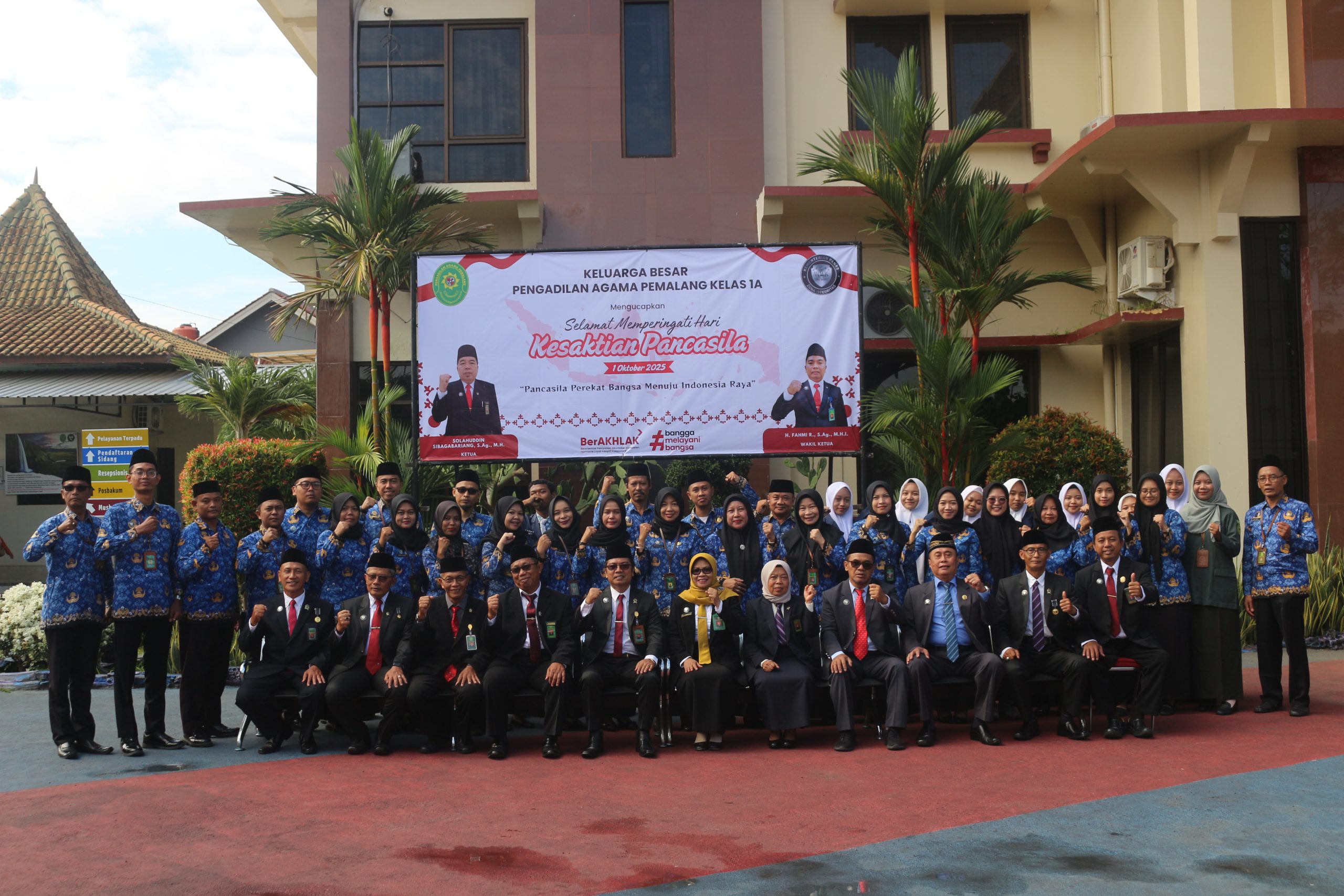 Menindaklanjuti Surat Sekretaris Mahkamah Agung RI Nomor : 15388/SEK/HM3.1.1/IX/2025 tanggal 29 September 2025 tentang pelaksanaan Upacara memperingati Hari Kesaktian Pancasila yang jatuh pada hari Rabu tanggal 01 Oktober 2025. Dalam acara tersebut Wakil Ketua Pengadilan Agama Pemalang Dr. H. Fahmi R, S.Ag, M.H selaku Pembina Upacara yang di ikuti oleh Jajaran Hakim, Sekretaris, Panitera, Pejabat Fungsional, Struktural dan PPPK, PPNPN, serta Pelajar PPL (Prakter Pengalaman Lapangan) dari SMK N 1 Pemalang dan SMK Muhammadiyah 1 Pemalang di Pengadilan Agama Pemalang.