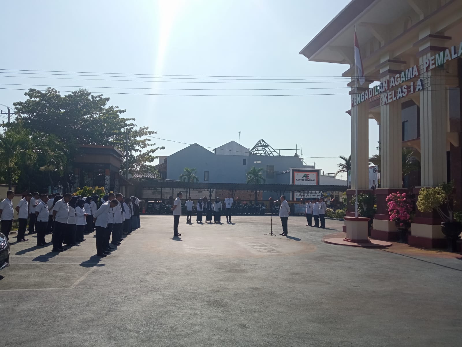 Pada hari Senin tanggal 13 Oktober 2025 Aparatur Pengadilan Agama Pemalang melaksanakan kegiatan Apel Pagi. Dalam kegiatan tersebut Ketua Pengadilan Agama Pemalang H. Solahuddin Sibagabariang, S.Ag, M.H bertindak sebagai Pembina apel. Dalam amanat Pembina apel beliau mengucapkan banyak terima kasih atas meningkatnya Kinerja Triwulan III sehingga peringkat Nasional Pengadilan Agama Pemalang bisa naik dari Triwulan sebelumnya. Beliau juga mengingatkan untuk selalu di siplin waktu maupun disiplin dalam berpakaian, dan selalu menjunjung tinggi Integritas Pengadilan Agama Pemalang.