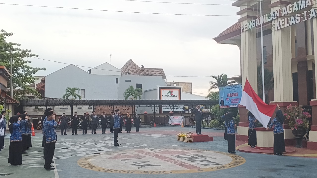 Hari Senin tanggal 10 November pukul 08.00 WIB Aparatur Pengadilan Agama Pemalang melaksanakan Upacara memperingati Hari Pahlawan. Kegiatan tersebut di hadiri oleh Wakil Ketua Pengadilan Agama Pemalang, Para Hakim, Sekretaris, Panitera, Pejabat Struktural, Fungsional, Serta PPPK dan PPNPN Pengadilan Agama Pemalang. Dalam kegiatan tersebut sebagai Pembina Upacara Wakil Pengadilan Agama Pemalang DR. H. Fahmi, S.Ag, M.H.I. Dalam amanat beliau menyampaikan Pahlawanku Teladanku mengajak masyarakat untuk menjadikan pahlawan sebagai inspirasi dalam bersikap dan bertindak. Sementara Terus Bergerak Melanjutkan Perjuangan menegaskan bahwa perjuangan bangsa tidak berhenti pada masa lalu, meliankan harus terus dilanjutkan dengan kontribusi nyata sesuai peran masing-masing. Selamat Memperingati Hari Pahlawan Nasional Tahun 2025. Terus Berjuang, Melanjutkan Perjuangan.