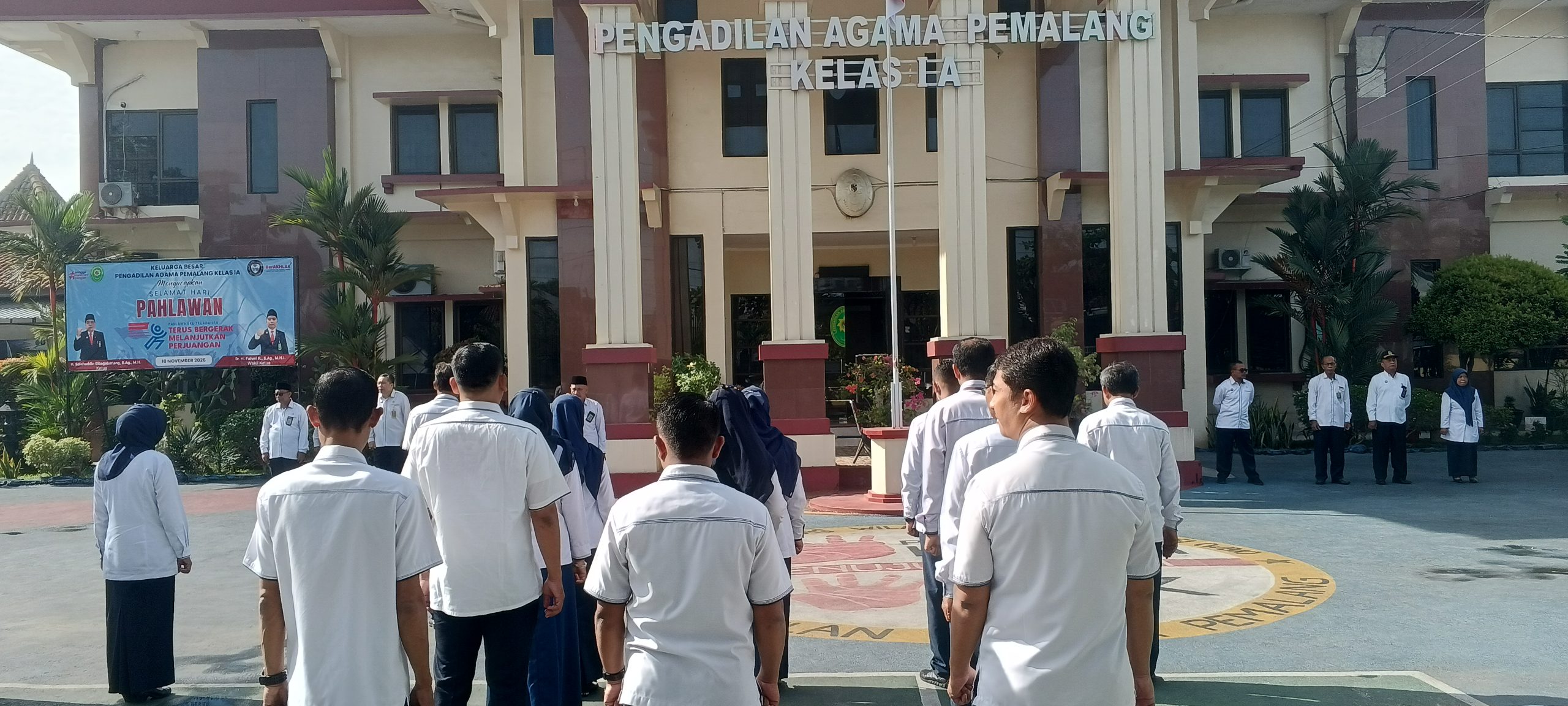 Bertempat di Halaman Depan Kantor Pengadilan Agama Pemalang dilaksanakan Apel Senin Pagi. Bertindak sebagai Pembina Apel Hakim Pengadilan Agama Pemalang Drs. Syamsul Falah, M.H. Dalam amanatnya Beliau menyampaikan untuk selalu menjunjung tinggi Integritas dan disipilin dalam bekerja.