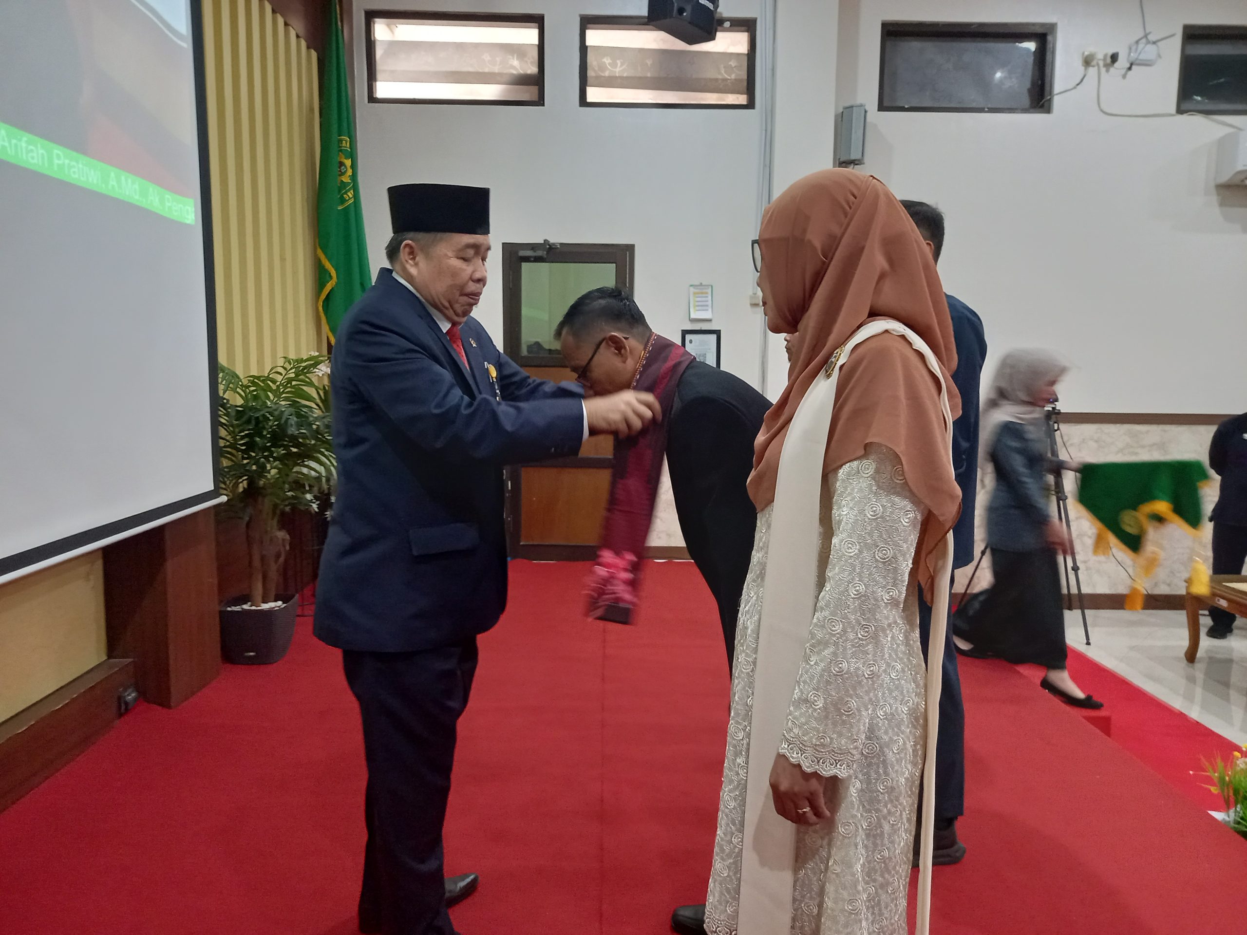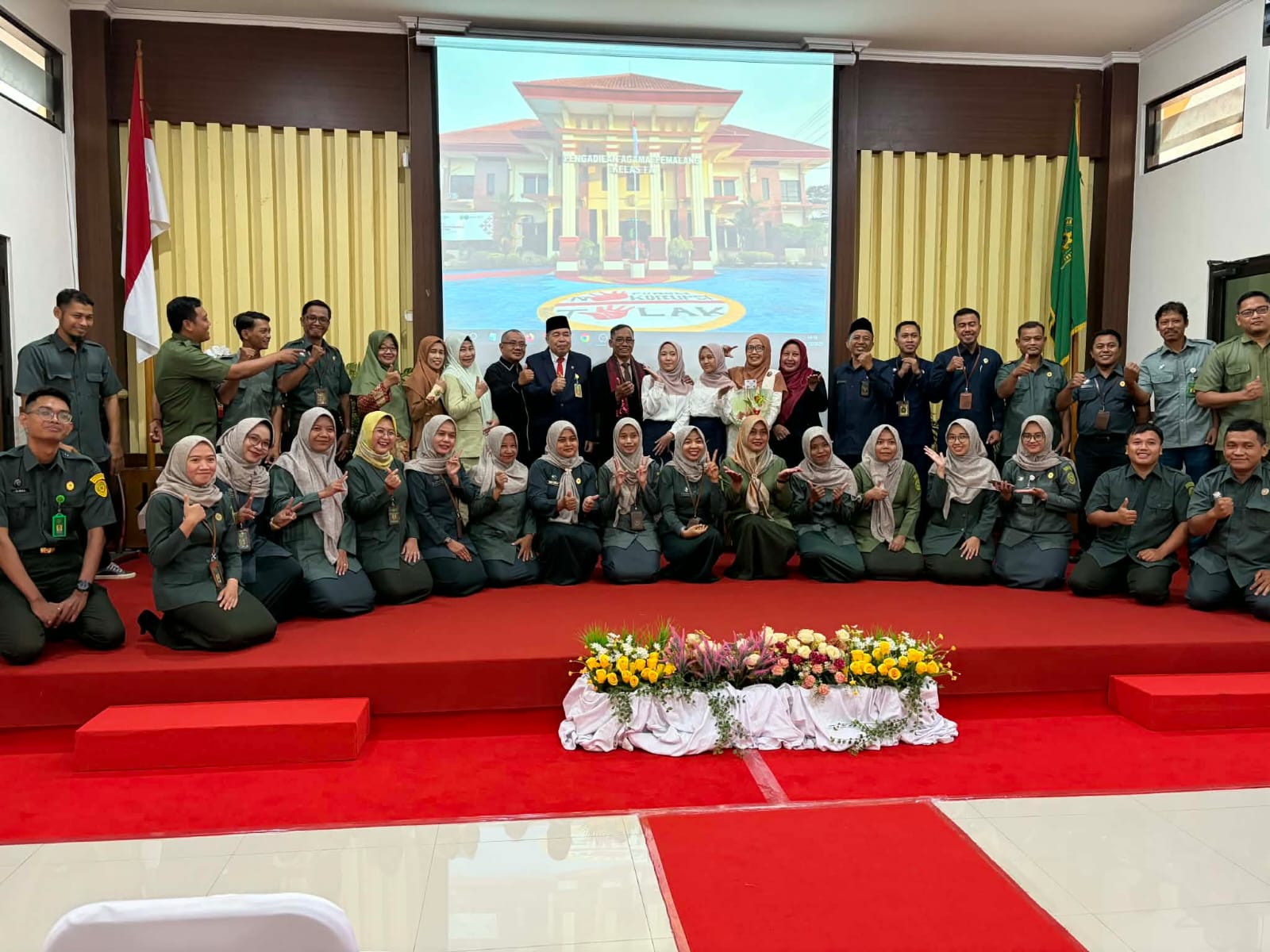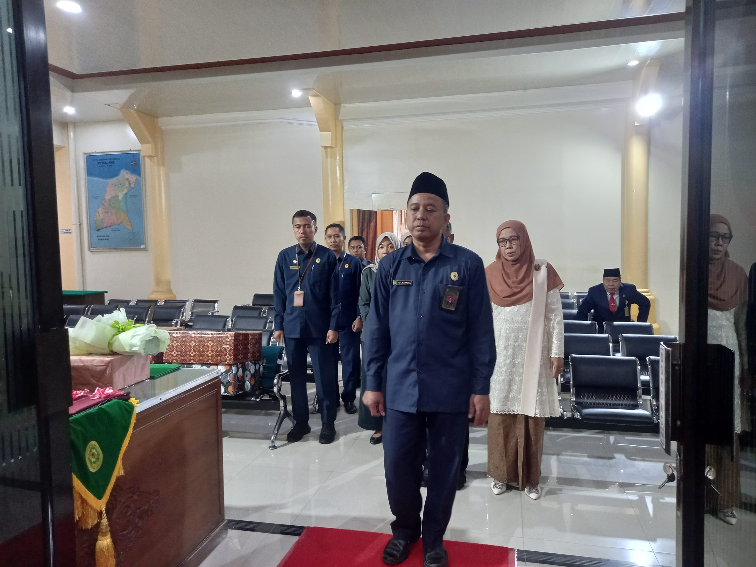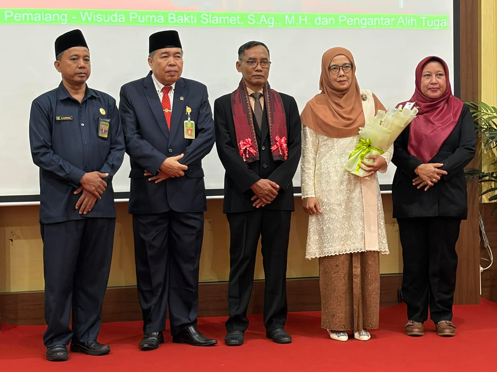 Bertempat di Ruang Sidang Abu Bakar Ash Shidiq pukul 14.00 WIB dilaksanakan Wisuda Purnabhakti Kepala Sub Bagian Kepegawaian dan Ortala Pengadilan Agama Pemalang Bapak Slamet, S.Ag, M.H dan Pengantar alih tugas Jurusita Pengganti Umi Arifah Pratiwi, A.Md., Ak. Acara dibuka dengan doa bersama yang di pimpin oleh Hakim Pengadilan Agama Pemalang Bapak Drs. H. Mohamad Taufik, S.H, M.H.I. Kemudian dilanjutkan dengan Wisudawan menempati tempat Upacara dan dilanjutkan dengan kehadiran Ketua Pengadilan Agama Pemalang H. Solahuddin Sibagabariang, S.Ag, M.H. di tempat Upacara.