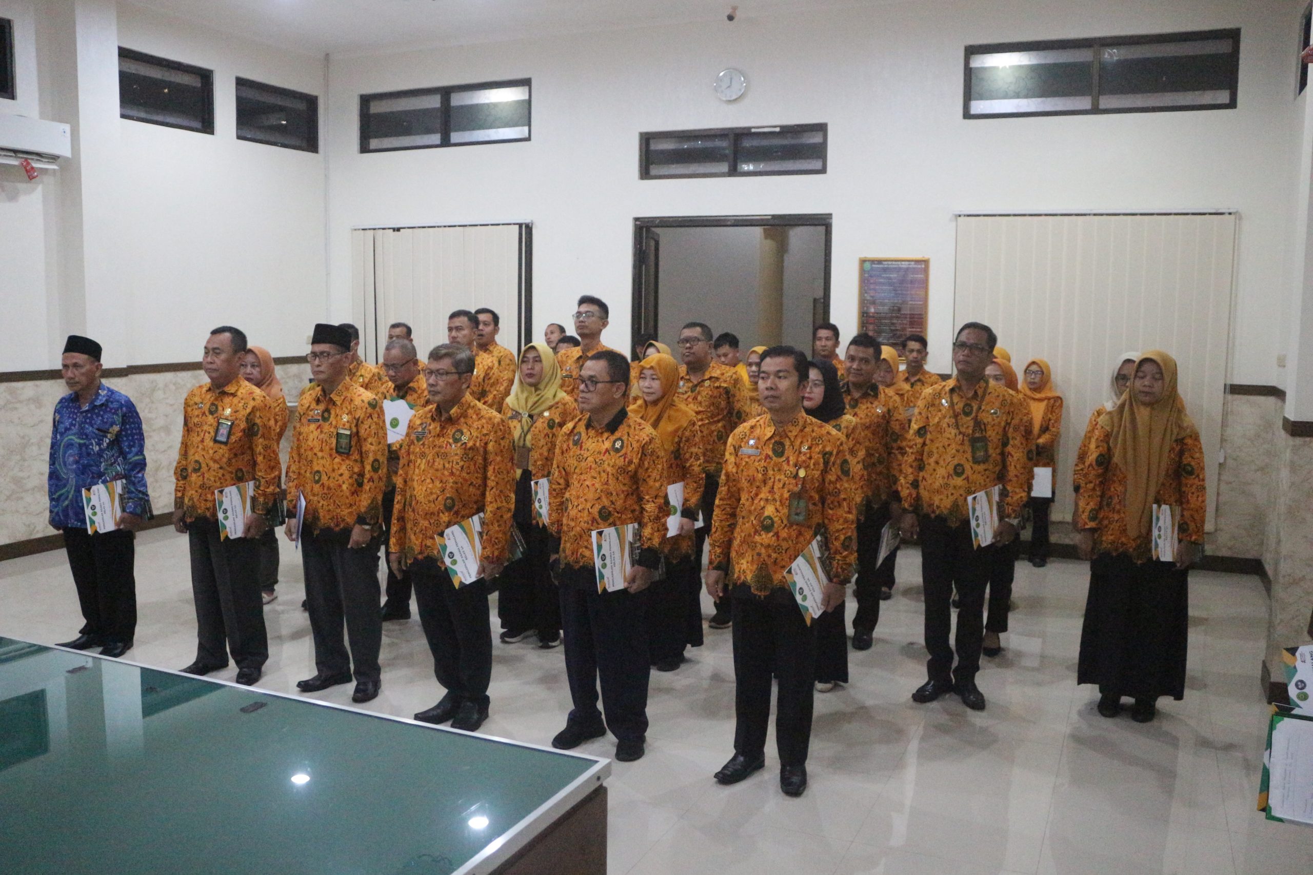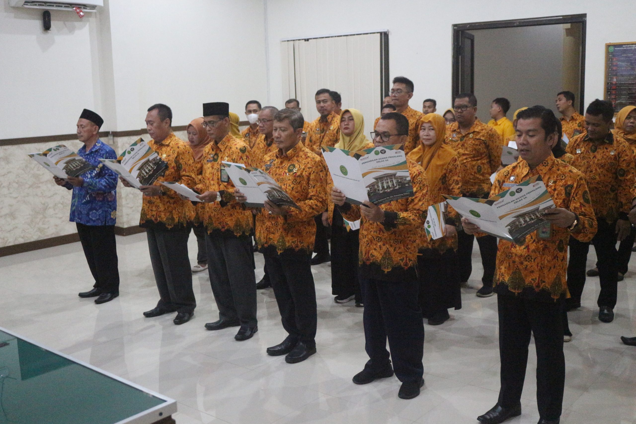 Pelaksanaan ini diawali dengan pengucapan Komitmen Bersama, disusul dengan penandatanganan dokumen oleh seluruh aparatur sebagai bentuk janji setia terhadap profesi dan Negara.