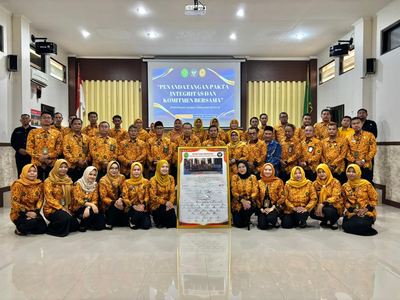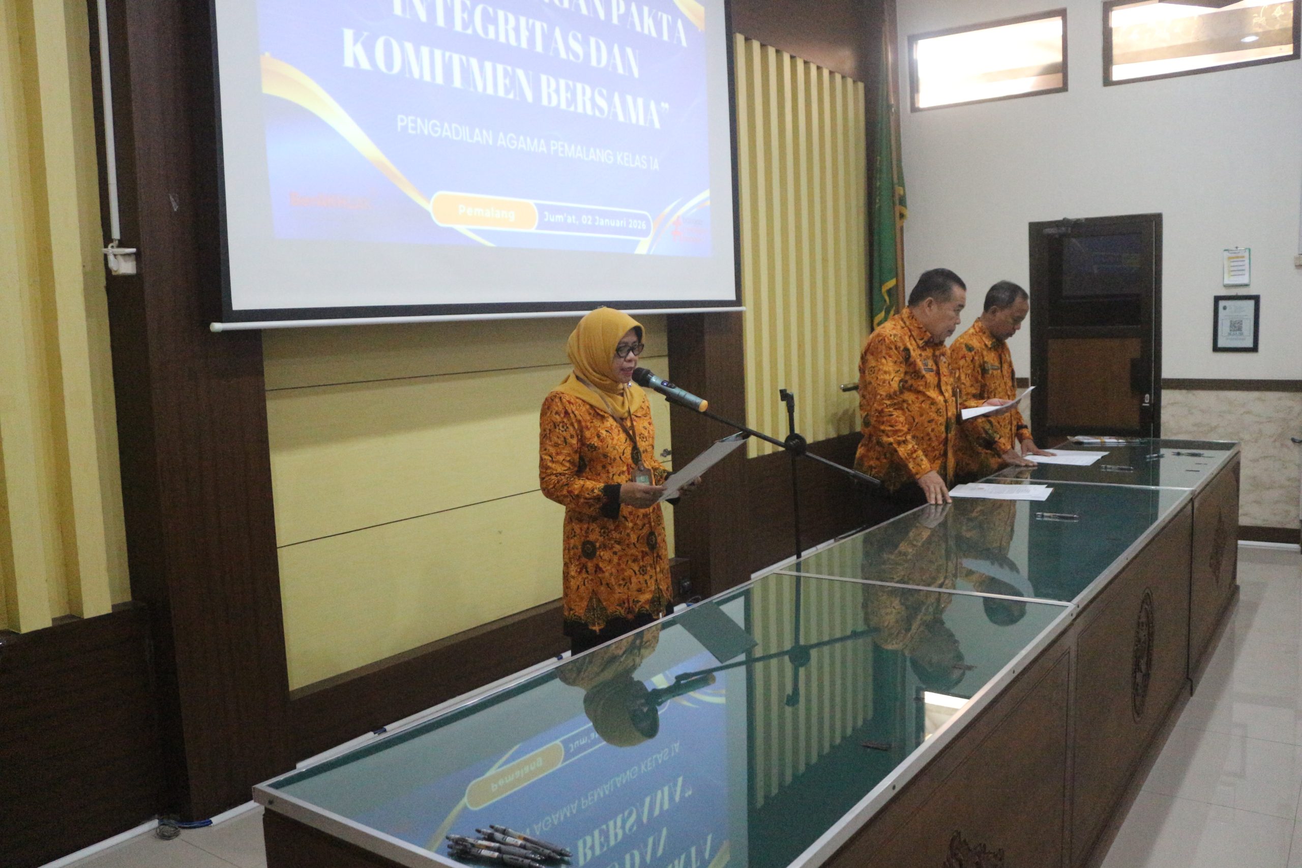 Mengawali hari pertama kerja di tahun 2026, Pengadilan Agama pemalang melaksanakan penandatanganan Pakta Integritas dan Komitmen Bersama bertempat di Ruang Sidang Abu Bakar Ash Shidiq. Acara diikuti oleh pimpinan, para hakim, serta seluruh Aparatur Pengadilan Agama Pemalang.