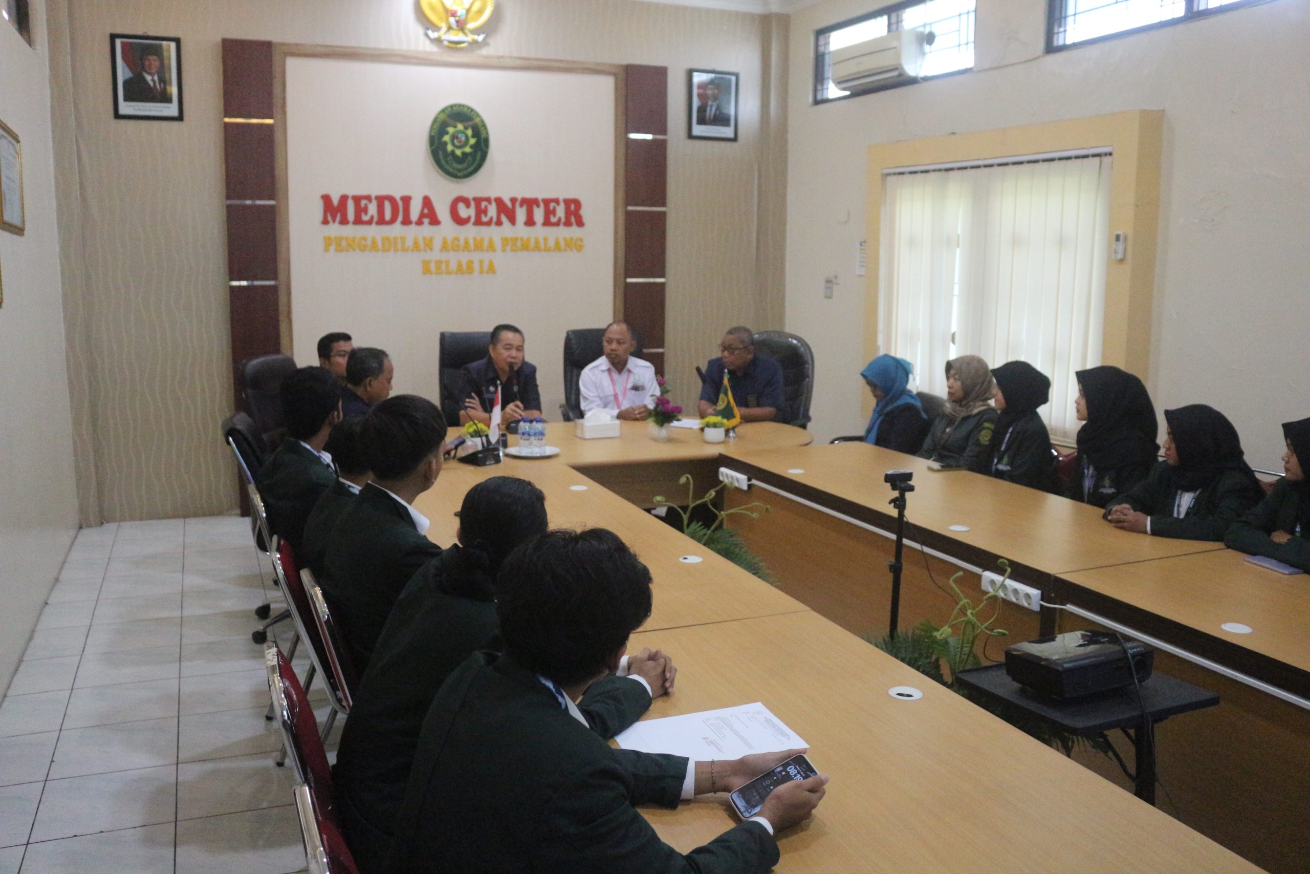 Pemalang, 6 Januari 2026, bertempet di Ruang Media Center Ketua Pengadilan Agama Pemalang H. Solahuddin Sibagabariang, S.Ag, M.H. di damping Wakil Ketua Pengadilan Agama Pemalang Dr. H. Fahmi R, S.Ag, M.H.I. Hakim Pembimbing Drs. H. Mohamad Taufik, S.H. dengan Panitera, Sekretaris, dan Analis Sumber Daya Manusia Pengadilan Agama Pemalang menerima mahasiswa dari UIN K.H. Abdurrahman Wahid Pekalongan untuk melaksanakan Praktek Pengalaman Lapangan (PPL) di Pengadilan Agama Pemalang.