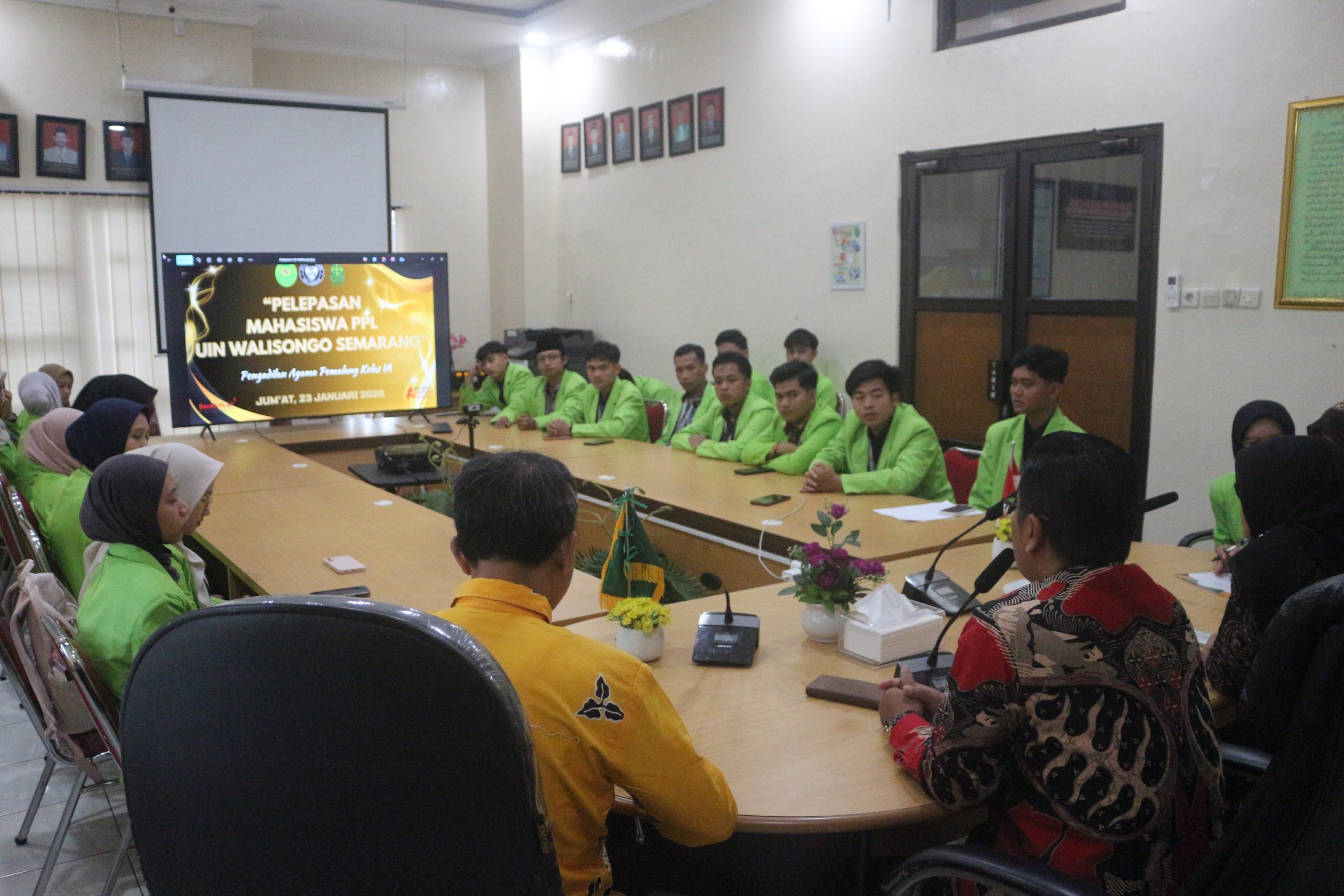 Pelepasan Mahasiswa praktek pengalaman lapangan UIN Walisongo, bertempat di ruang media center Pengadilan Agama Pemalang, Jumat 23 Januari 2026.
