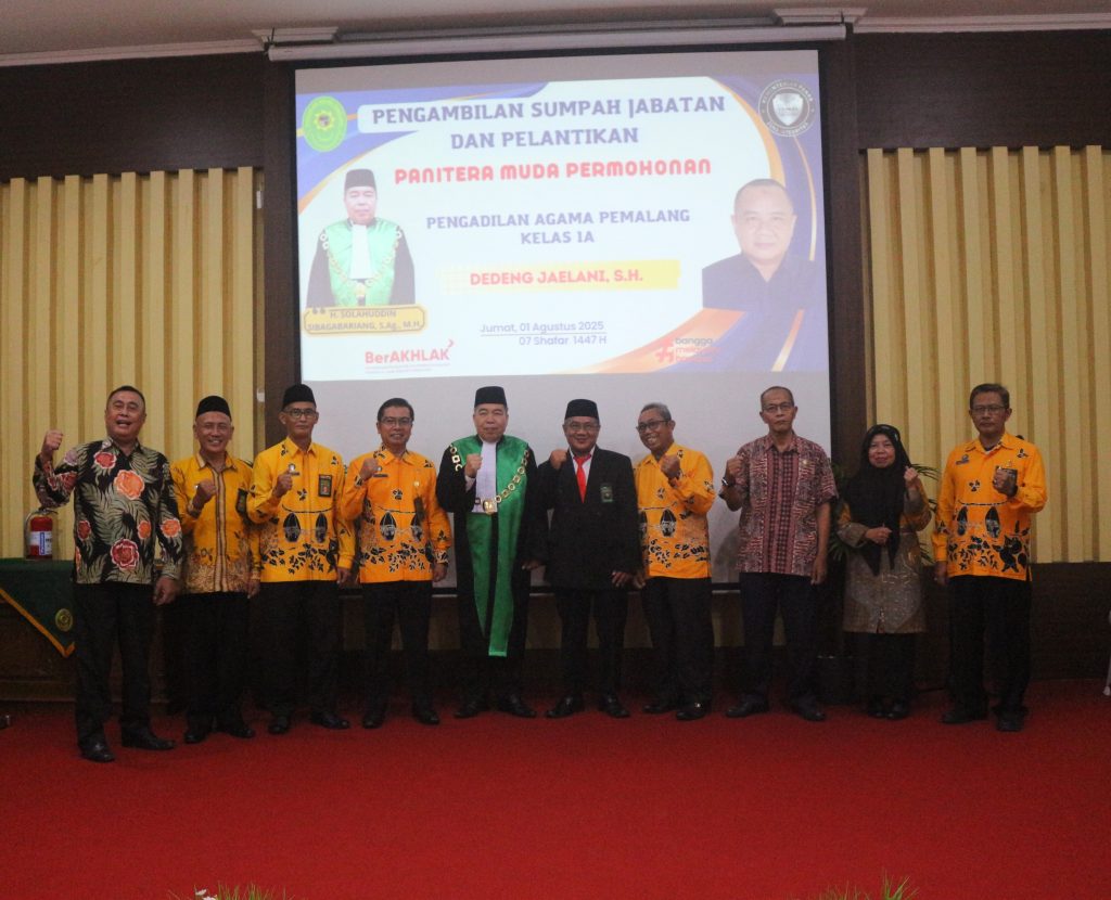 Pelantikan dan Pengambilan Sumpah Jabatan Panitera Muda Permohonan Pengadilan Agama Pemalang Bertempat di Ruang Sidang Utama Abu Bakar Ash Shidiq pukul 13.30 di laksanakan Pelantikan dan Pengambilan Sumpah Jabatan Panitera Muda Permohonan Pengadilan Agama Pemalang Dedeng Jaelani, S.H (Sebelumnya Sekretaris PA Slawi). Acara Di buka dengan Menyanyikan lagu Indonesia Raya dan Himne Mahkamah Agung dilanjutkan […]