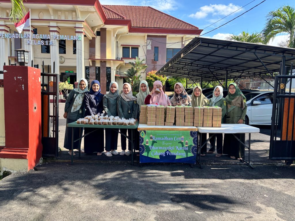 Kegiatan Pembagian Takjil Bersama Dharmayukti Karini Cabang Pemalang Kegiatan Pembagian Takjil Bersama Dharmayukti Karini Cabang Pemalang dalam rangka Bulan Suci Ramadhan 1446 H. Pembagian diberikan kepada masyarakat yang melintas di area depan Kantor Pengadilan Agama Pemalang Kelas IA.