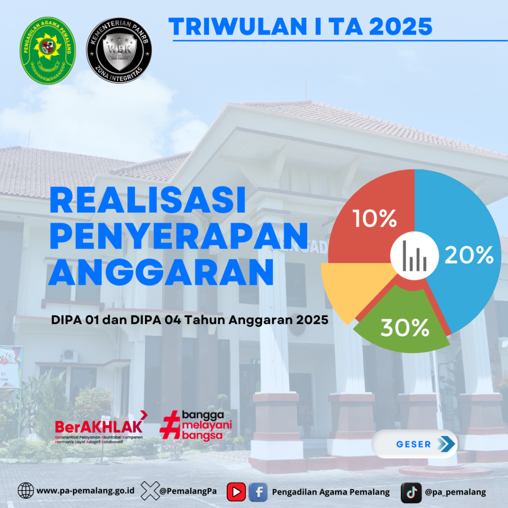 Laporan Realisasi Penyerapan Anggaran Pengadilan Agama Pemalang Kelas IA, pada Periode Triwulan I Tahun Anggaran 2025