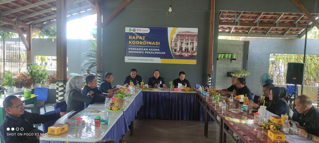 RAPAT KOORDINASI (RAKOR) Pengadilan Agama Se – Korwil Pekalongan Ketua, Panitera dan Sekretaris Pengadilan Agama Pemalang Mengikuti Rapat Koordianasi Pengadilan Agama Se Korwil Pekalongan Selasa, 10 September 2024 yang di adakan di Bojong Resto Pemalang. Dalam Rapat ini membahas mengenai Pembinaan KPTA Semarang dan rencana KMA CUP.