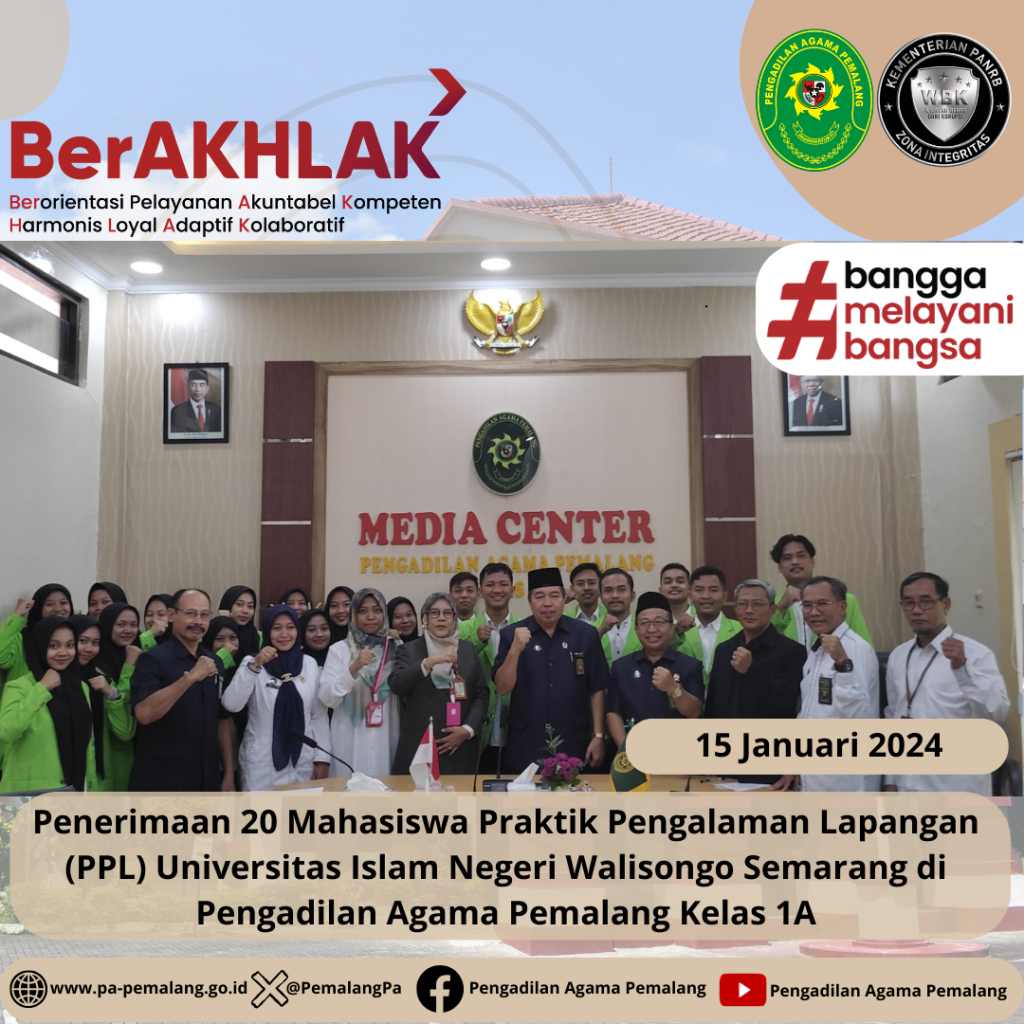 PENERIMAAN 20 MAHASISWA PRAKTIK PENGALAMAN LAPANGAN (PPL) UNIVERSITAS ISLAM NEGERI WALISONGO SEMARANG DI PENGADILAN AGAMA PEMALANG KELAS 1A