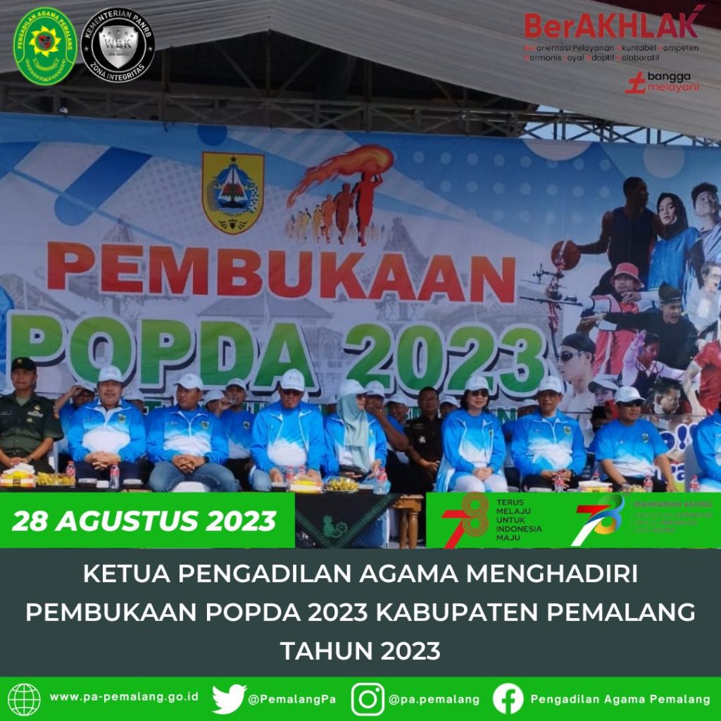 Ketua Pengadilan Agama Pemalang Menghadiri Pembukaan POPDA Pemalang, 28 Agustus 2023 Ketua Pengadilan Agama Pemalang, Solahuddin Sibagabariang, S.Ag., M.H Menghadiri acara Pembukaan POPDA Kabupaten Pemalang Tahun 2023 di Stadion Mochtar.