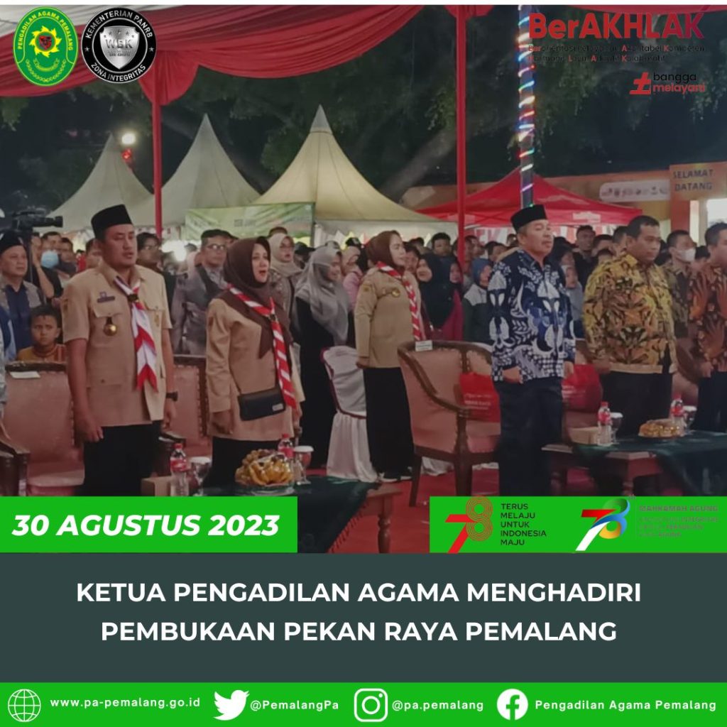 Ketua Pengadilan Agama Pemalang Menghadiri Pembukaan Pekan Raya Pemalang Di Alun Alun Pemalang Pemalang, 30 Agustus 2023Ketua Pengadilan Agama Pemalang Solahuddin Sibagabariang, S.Ag., M.H menghadiri pembukaan Pekan Raya Pemalang di Alun – Alun Pemalang. Pekan Raya Pemalang akan berlangsung dari tanggal 30 Agustus 2023 – 4 September 2023.(EYK)