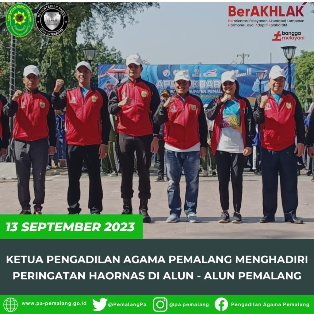 Ketua Pengadilan Agama Pemalang Menghadiri Apel Akbar Insan Olahraga yang berlokasi di Alun-alun Kab.Pemalang Pemalang, 13 September 2023 Ketua Pengadilan Agama Pemalang, Solahuddin Sibagabaring, S.Ag., M.H menghadiri Apel Akbar Insan Olahraga dalam rangka HAORNAS ke 40 yang berlokasi di Alun-alun Kab.Pemalang.