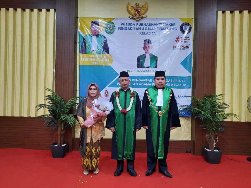WISUDA PURNABHAKTI HAKIM DAN PENGANTAR ALIH TUGAS PEJABAT KEPANITERAAN Pemalang, 07 Juli 2023. Setelah 37 Tahun 4 bulan YM. Drs. H. Djuwadi, S.H., M.H. mengabdi sebagai Pegawai Negeri Sipil dan Hakim pada Pengadilan Agama, terhitung pensiun 1 Juli 2023 beliau sudah memasuki masa Purnabhakti pada Pengadilan Agama Pemalang dengan jabatan terakhir sebagai Hakim. Pagi […]