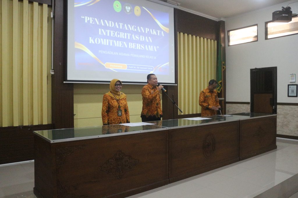 Penandatanganan Pakta Integritas dan Komitmen Bersama Pengadilan Agama Pemalang Tahun 2026 Mengawali hari pertama kerja di tahun 2026, Pengadilan Agama pemalang melaksanakan penandatanganan Pakta Integritas dan Komitmen Bersama bertempat di Ruang Sidang Abu Bakar Ash Shidiq. Acara diikuti oleh pimpinan, para hakim, serta seluruh Aparatur Pengadilan Agama Pemalang. Pelaksanaan ini diawali dengan pengucapan Komitmen Bersama, […]