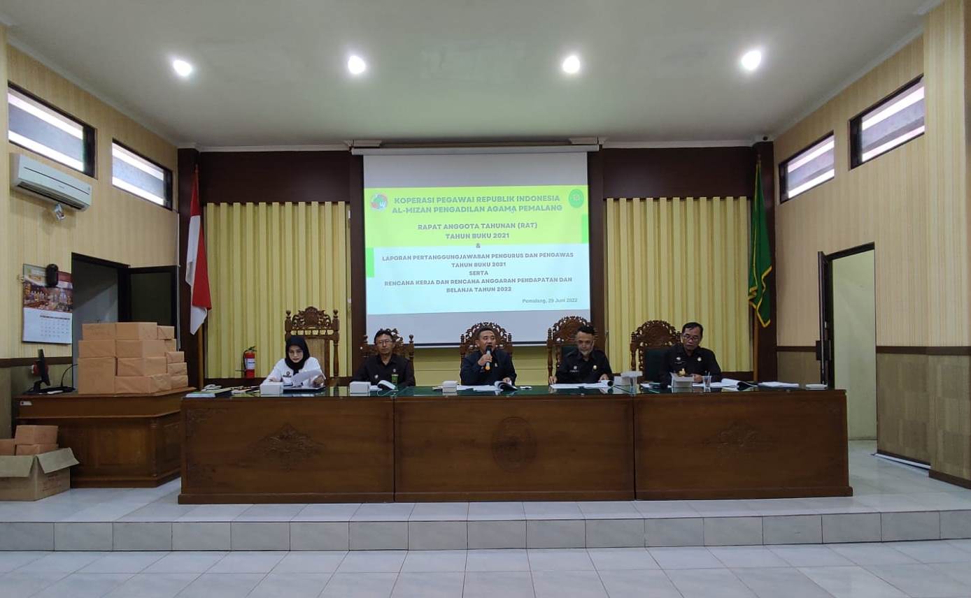 RAPAT ANGGOTA TAHUNAN (RAT) KOPERASI AL MIZAN PENGADILAN AGAMA PEMALANG Rabu, 29 Juni 2022, Koperasi Al Mizan Pengadilan Agama Pemalang melaksanakan Rapat Anggota Tahunan (RAT) Tahun Buku 2021 di Ruang Sidang Abu Bakar As Shiddiq Pengadilan Agama Pemalang. Acara yang dimulai pukul 13.00 WIB ini dilaksanakan dengan agenda Laporan Pertanggungjawaban Pengurus Tahun Buku 2021, […]