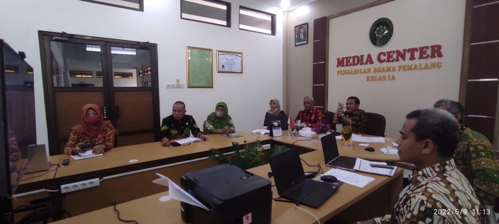 PENDAMPINGAN ZONA INTEGRITAS DALAM RANGKA PERSIAPAN DESK EVALUASI Pemalang, 09 Juni 2022. Pagi ini Ketua, Sekretaris, Panitera dan TIM ZI menghadiri acara Zona Integritas dalam rangka Persiapan Desk Evaluasi yang diselenggarakan oleh Pengadilan Tinggi Agama Semarang pada pukul 10.00 WIB melalui Zoom Meeting.