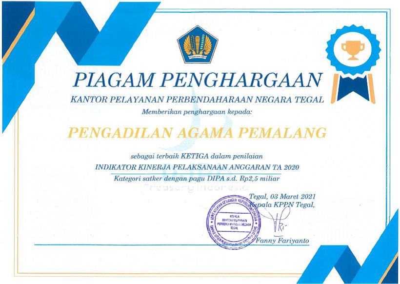 ASISTENSI DAN PENDAMPINGAN PENYUSUNAN DOKUMEN SAKIP Pemalang, 26 Januari 2021. Hari ini Pengadilan Tinggi Agama Semarang mengadakan asistensi dan pendampingan penyusunan dokumen Sistem Akuntabilitas Kinerja Instansi Pemerintah (SAKIP) Pengadilan Tinggi Agama Semarang dan Pengadilan Agama se-Jawa Tengah yang meliputi LkjIP, PKT, RKT, Revisi Rencana Strategis dan komponen lainnya. Acara dilakukan secara virtual dan diikuti […]